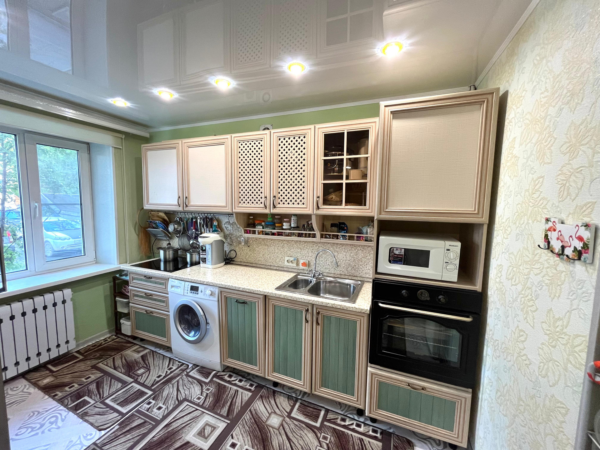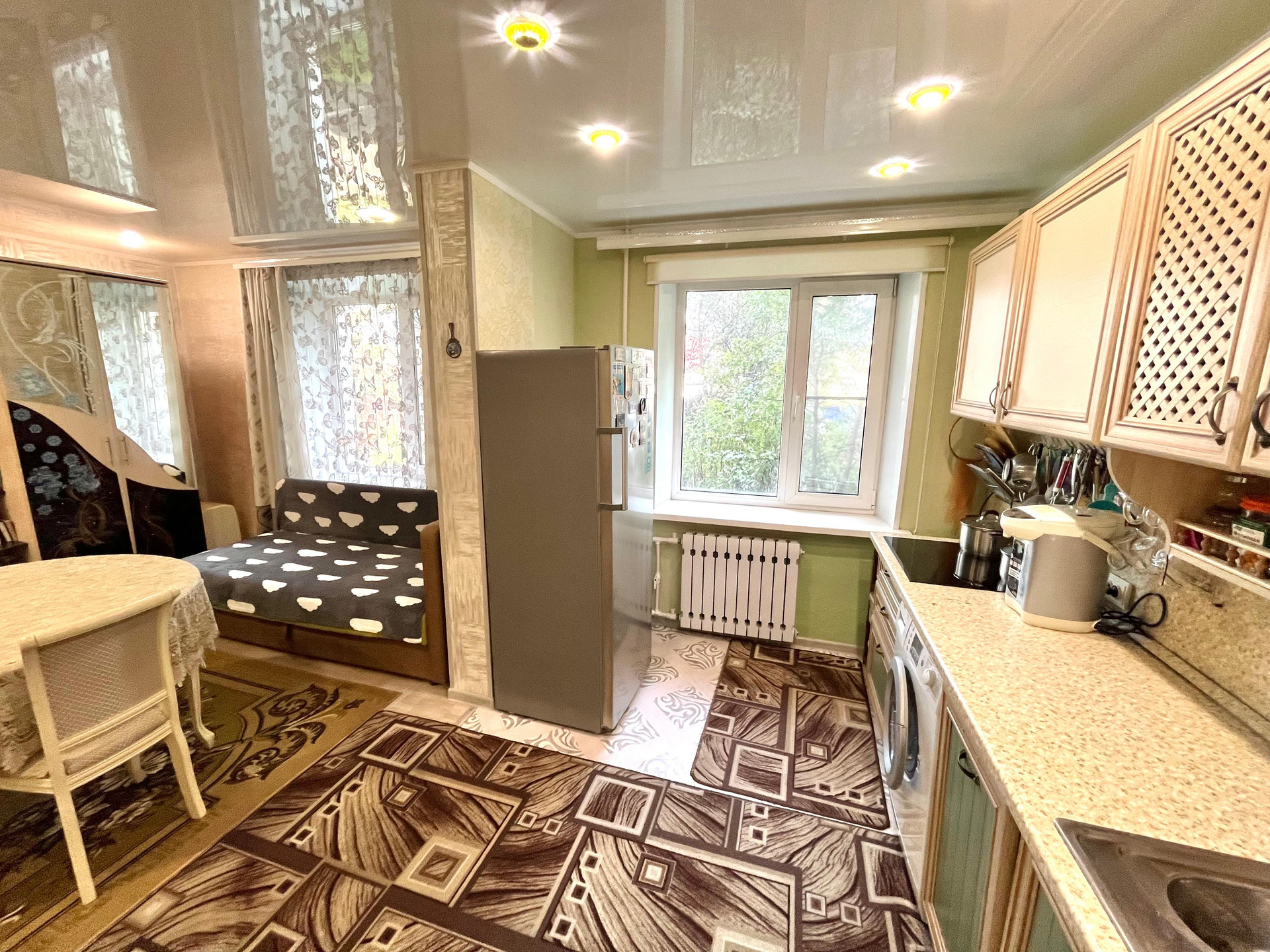 — Квартира расположена на первом этаже, вид на обе стороны дома, за счёт чего в квартире всегда много солнца и света.