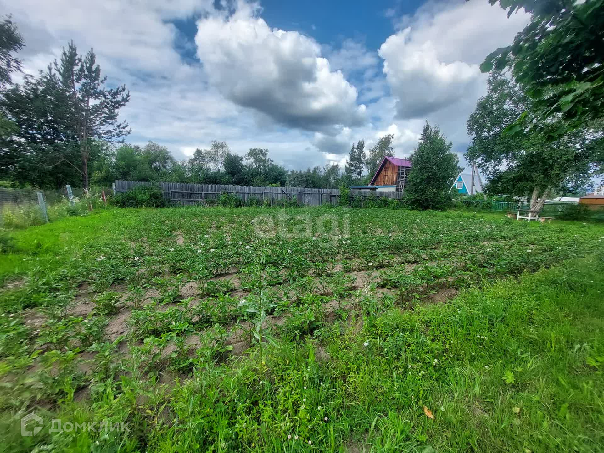 На участке посажены Ели, Яблоня, картофель(останется новому владельцу). Есть забор.