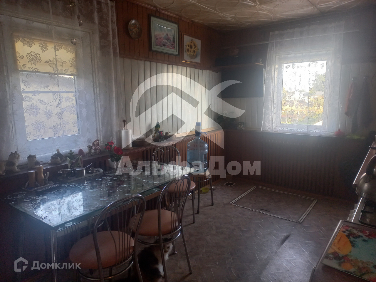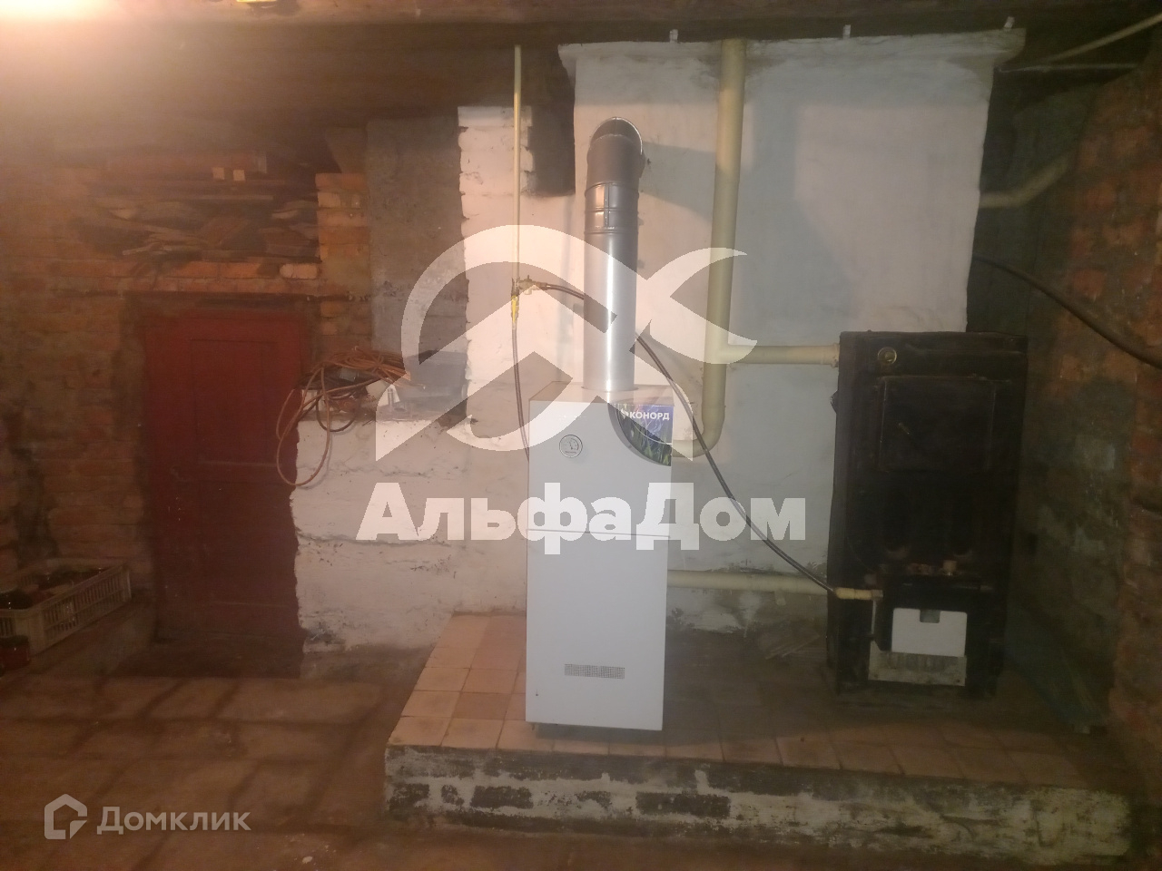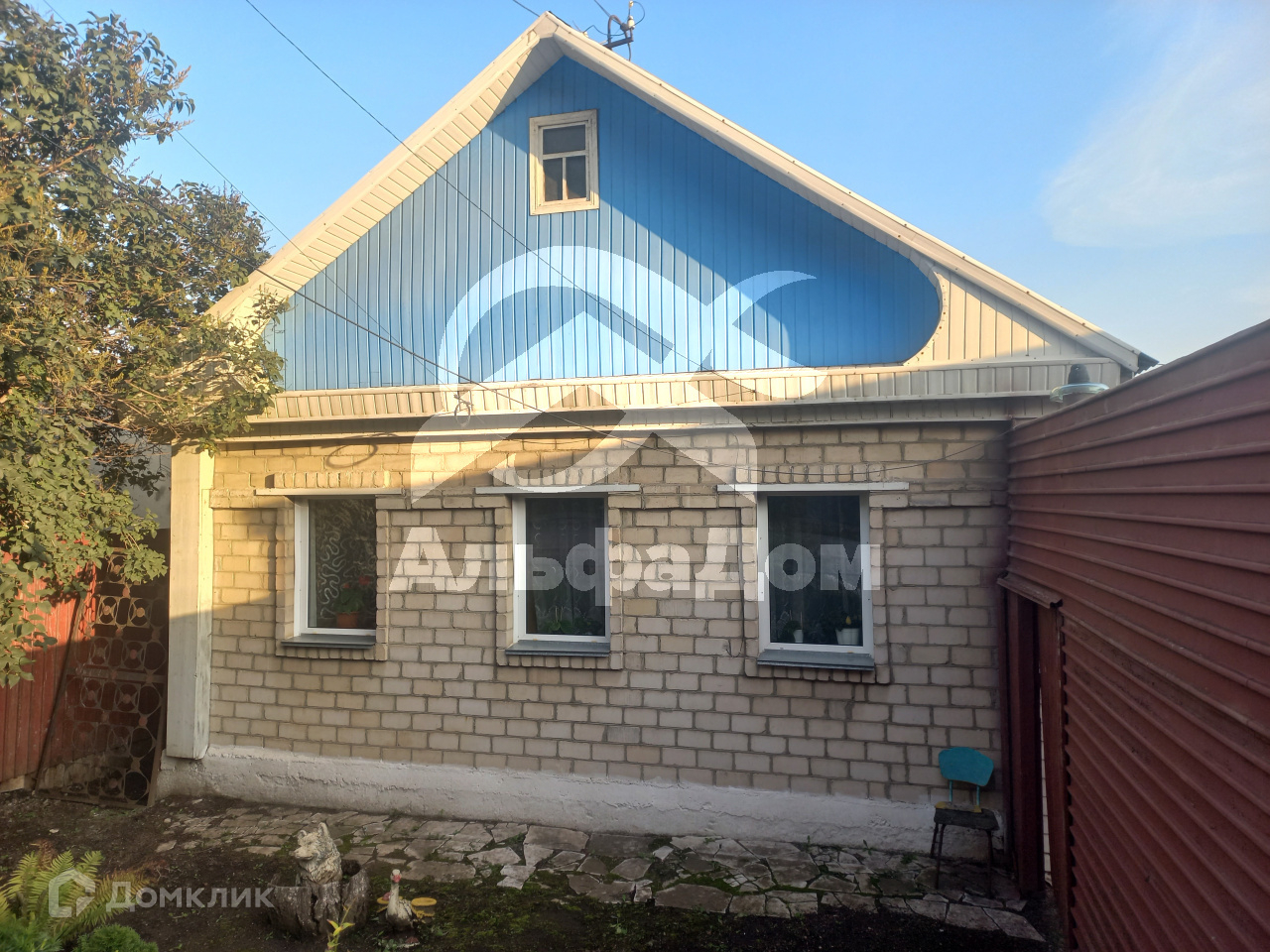 Бревенчатый дом, отделан кирпичом.