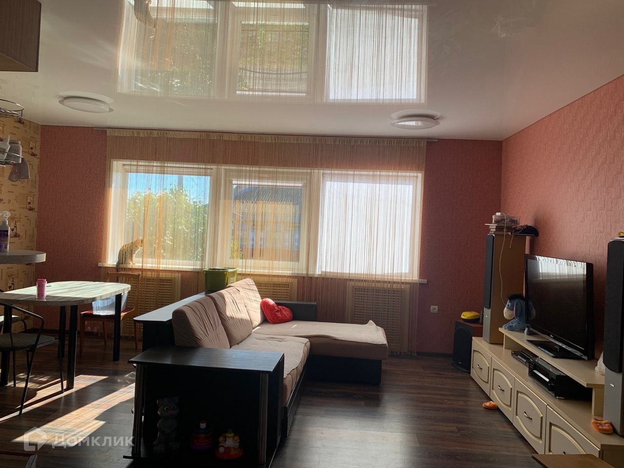 В доме на 1 этаже- большая,уютная и светлая гостиная с большими окнами и выходом на улицу,мансарда.Гардеробная со встроеннными шкафами и больший окном на задний двор,теплый пол,на потолке натяжной матовый потолок,во всех помещениях новые межкомнатные двери,большая овощная яма для хранения солений.Отопление настенным газовым котлом.