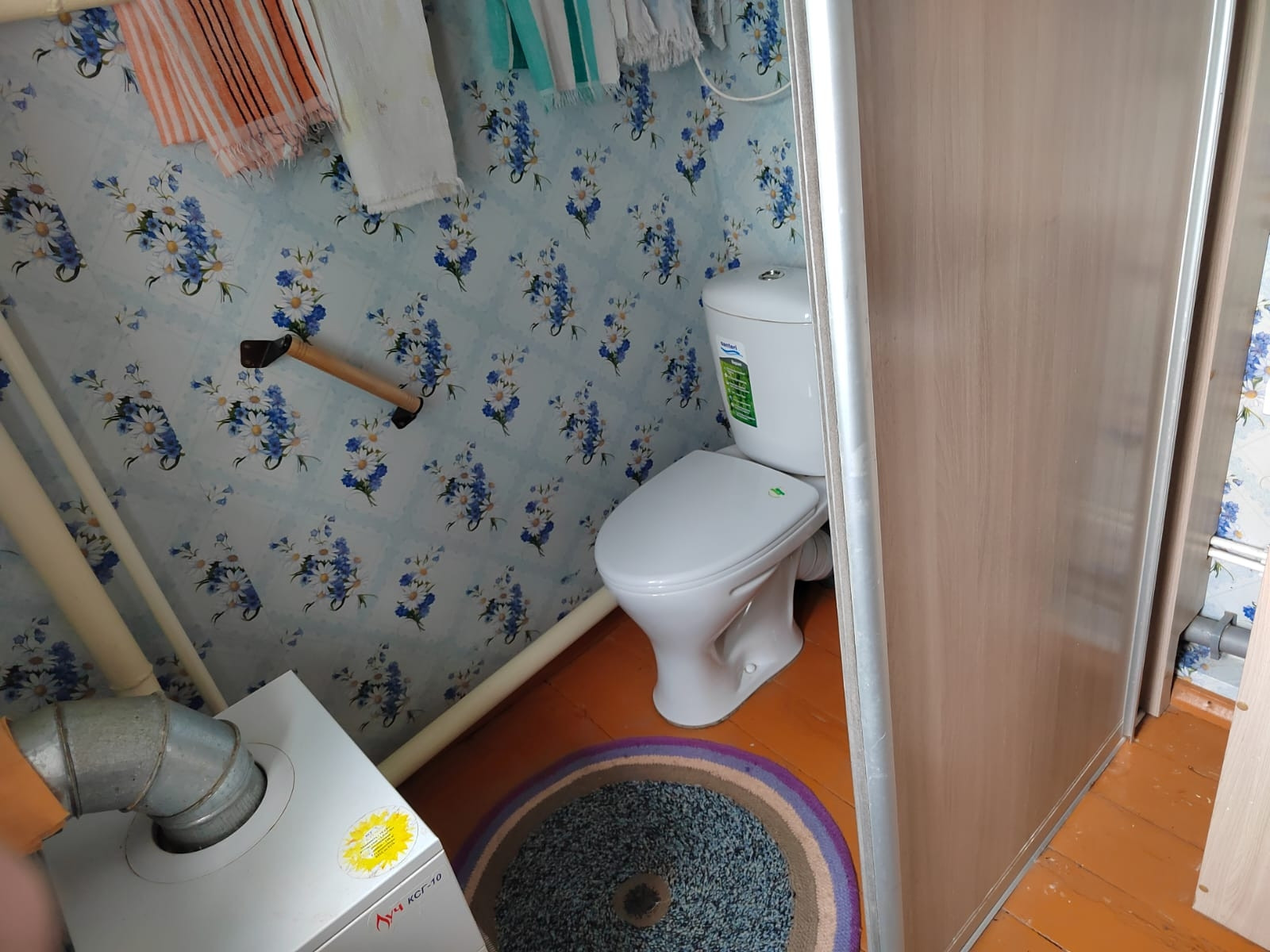 Газовый котел, вода горячая и холодная, выгребная яма в полисаднике.