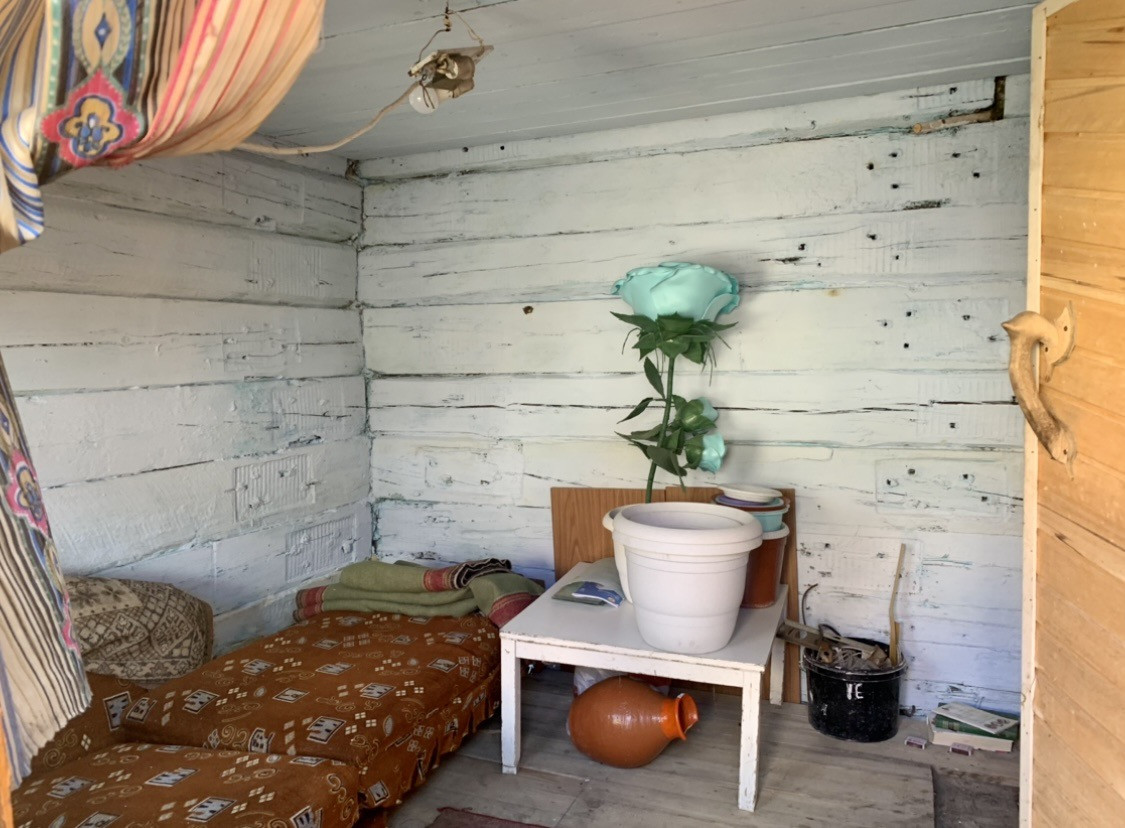 Большой участок земли, на котором есть возможность заниматься земледелием  (плодородная земля) и разведением птицы и животных. (выгул прямо за забором; есть два искусственных пруда). На участке имеются посадки; сарай; банька.