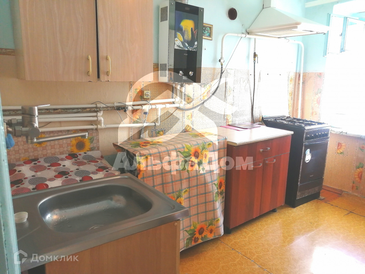 На кухню была куплена новая газовая плита, установлена газовая колонка.