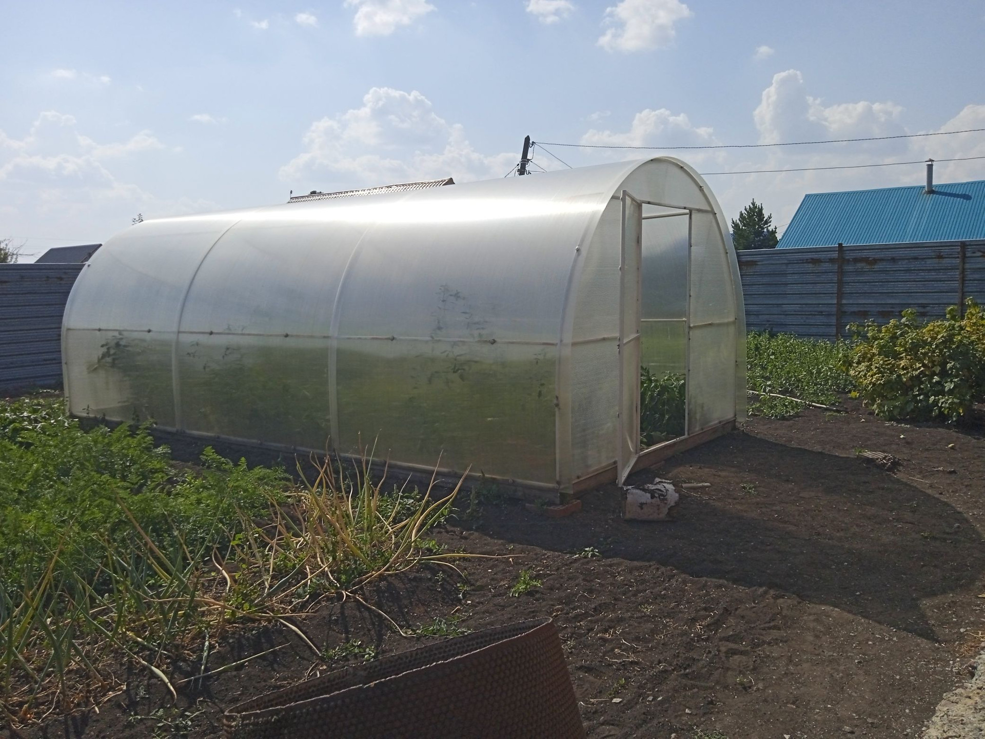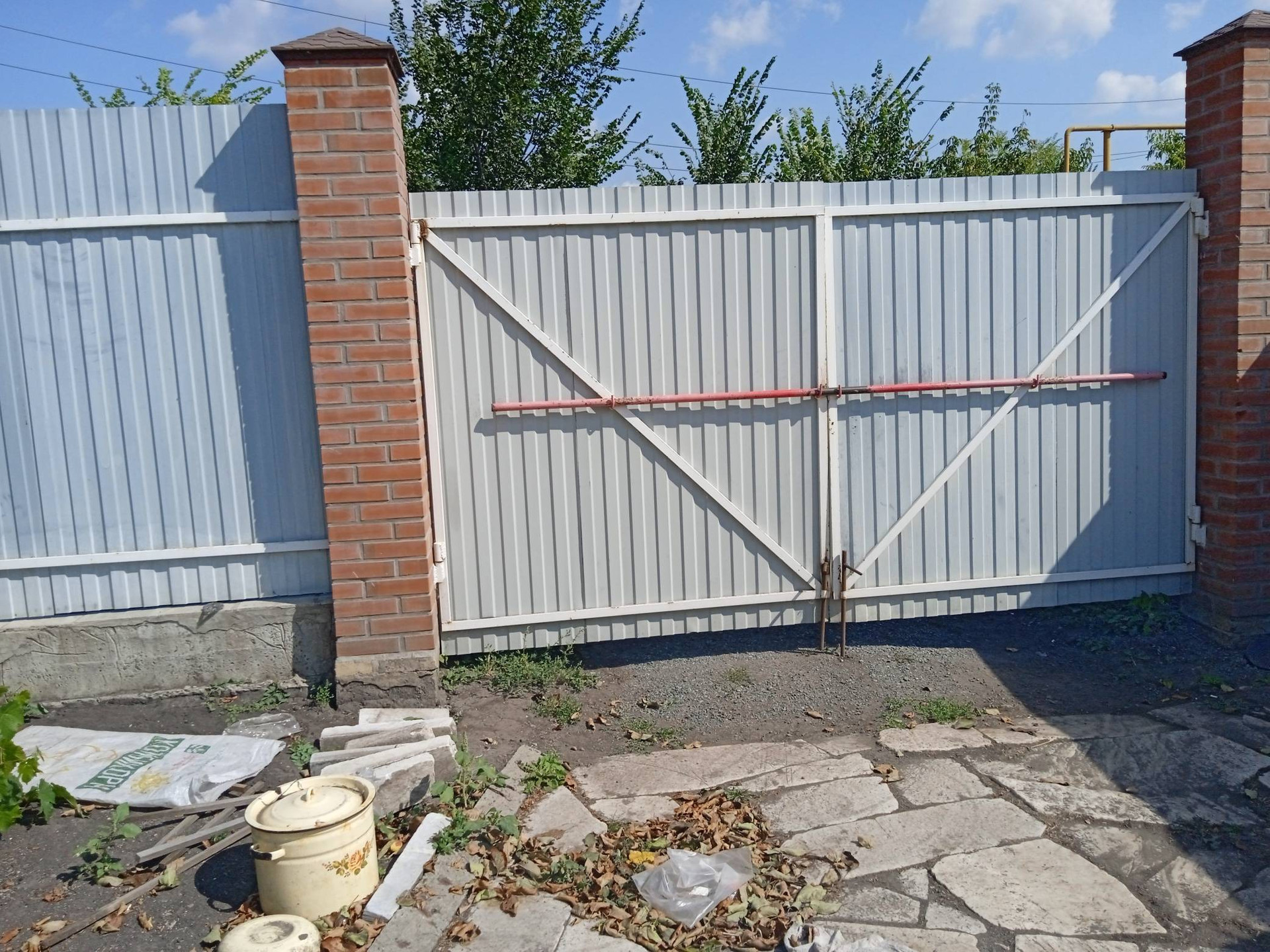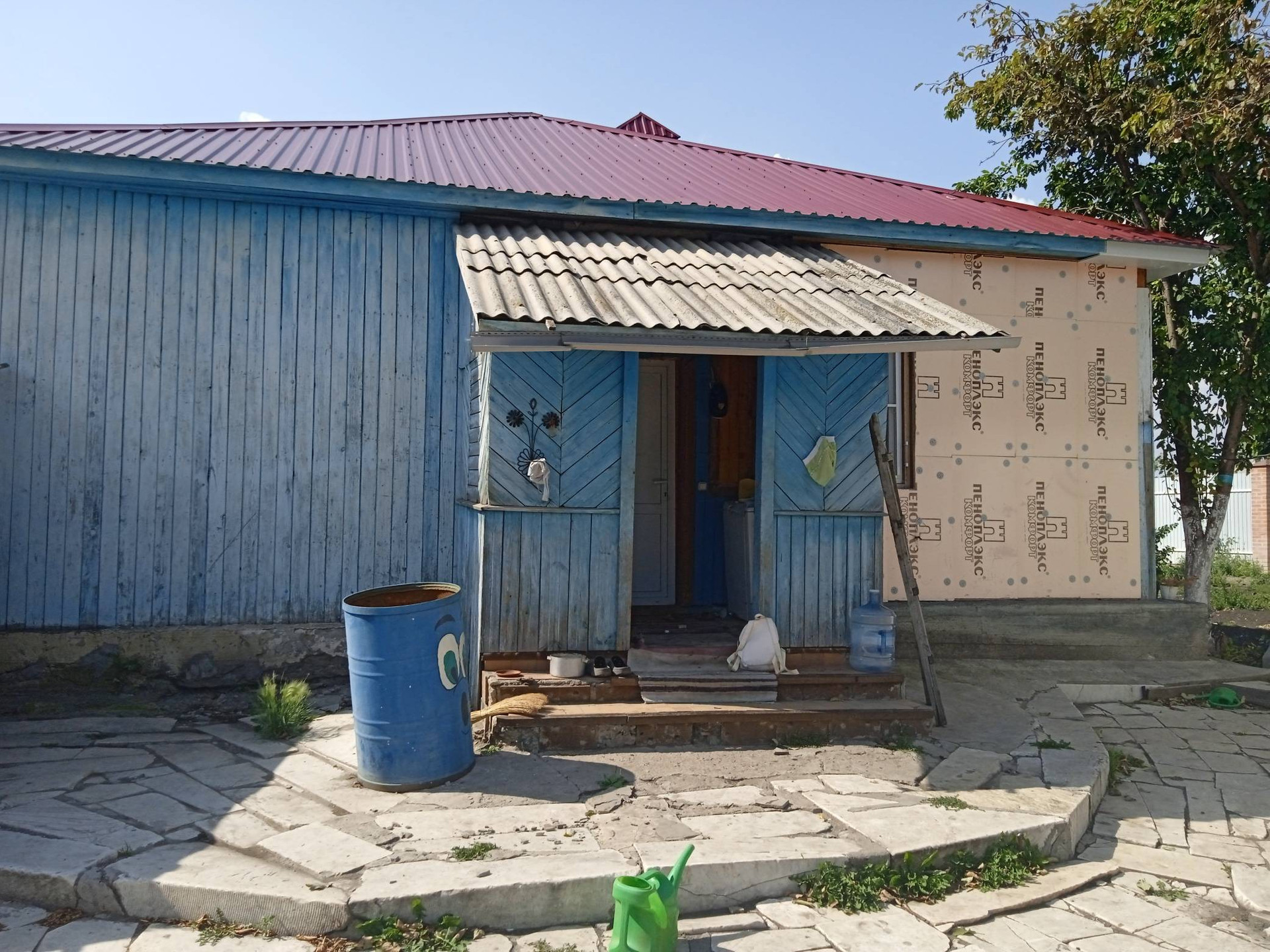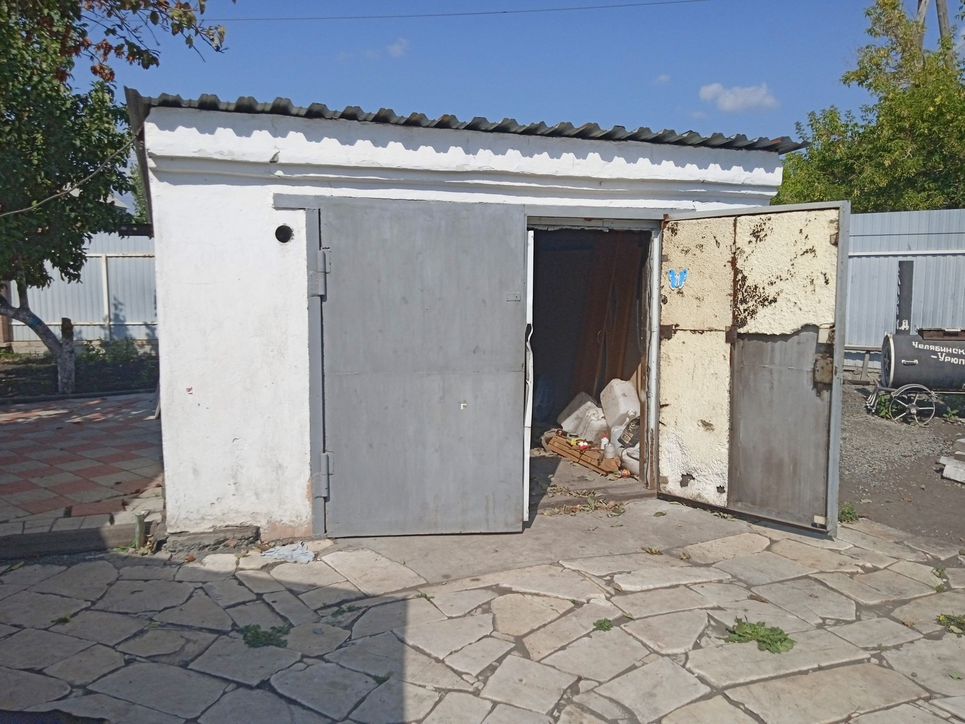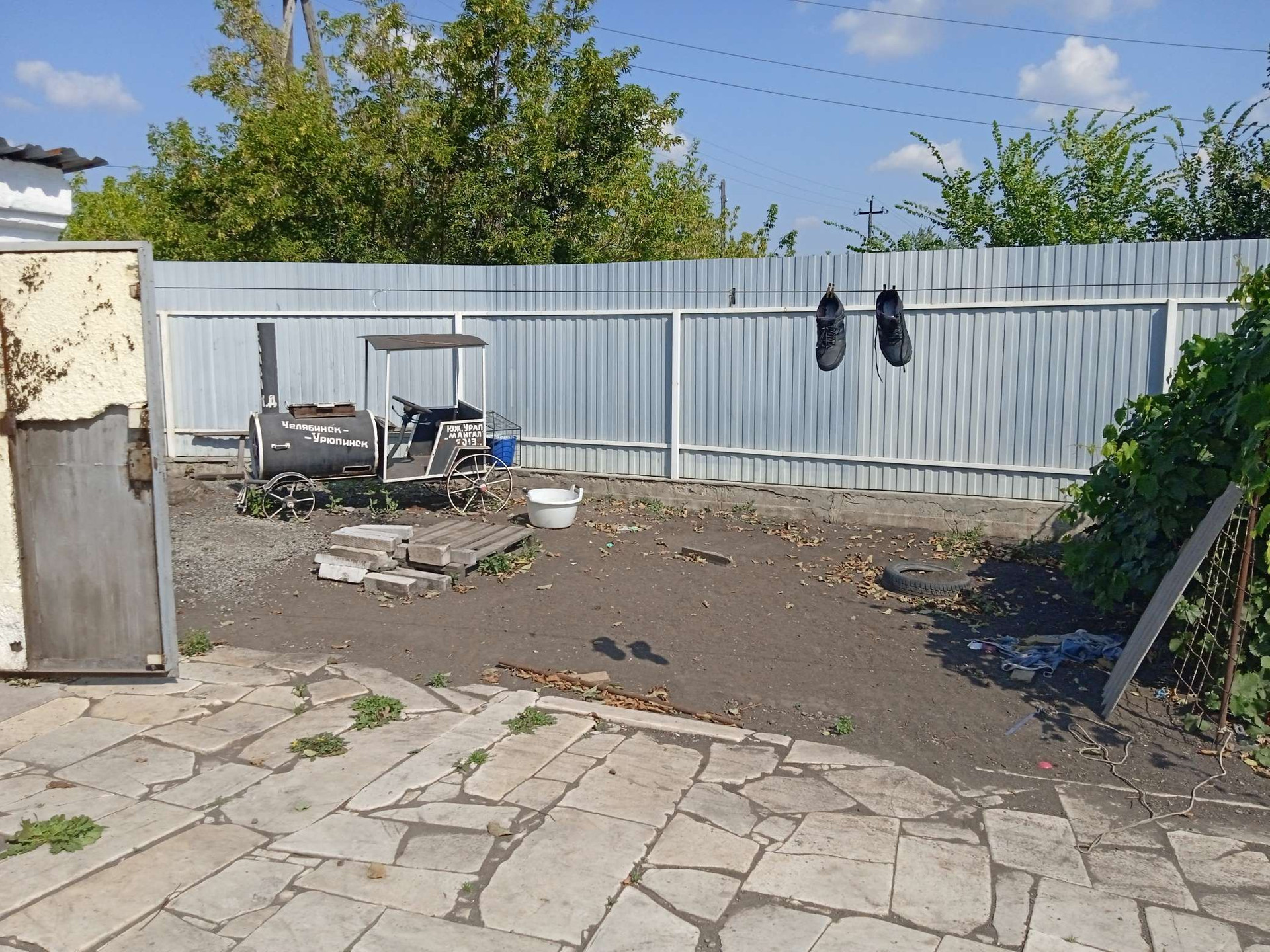 Небольшие сарайки. За домом стоит большая Баня на фундаменте, отапливается газом и дровами. Огород ухоженный растет все, яблони, груши, сливы, виноград, Виктория, ремонтантная малина. Двор выложен камнем.