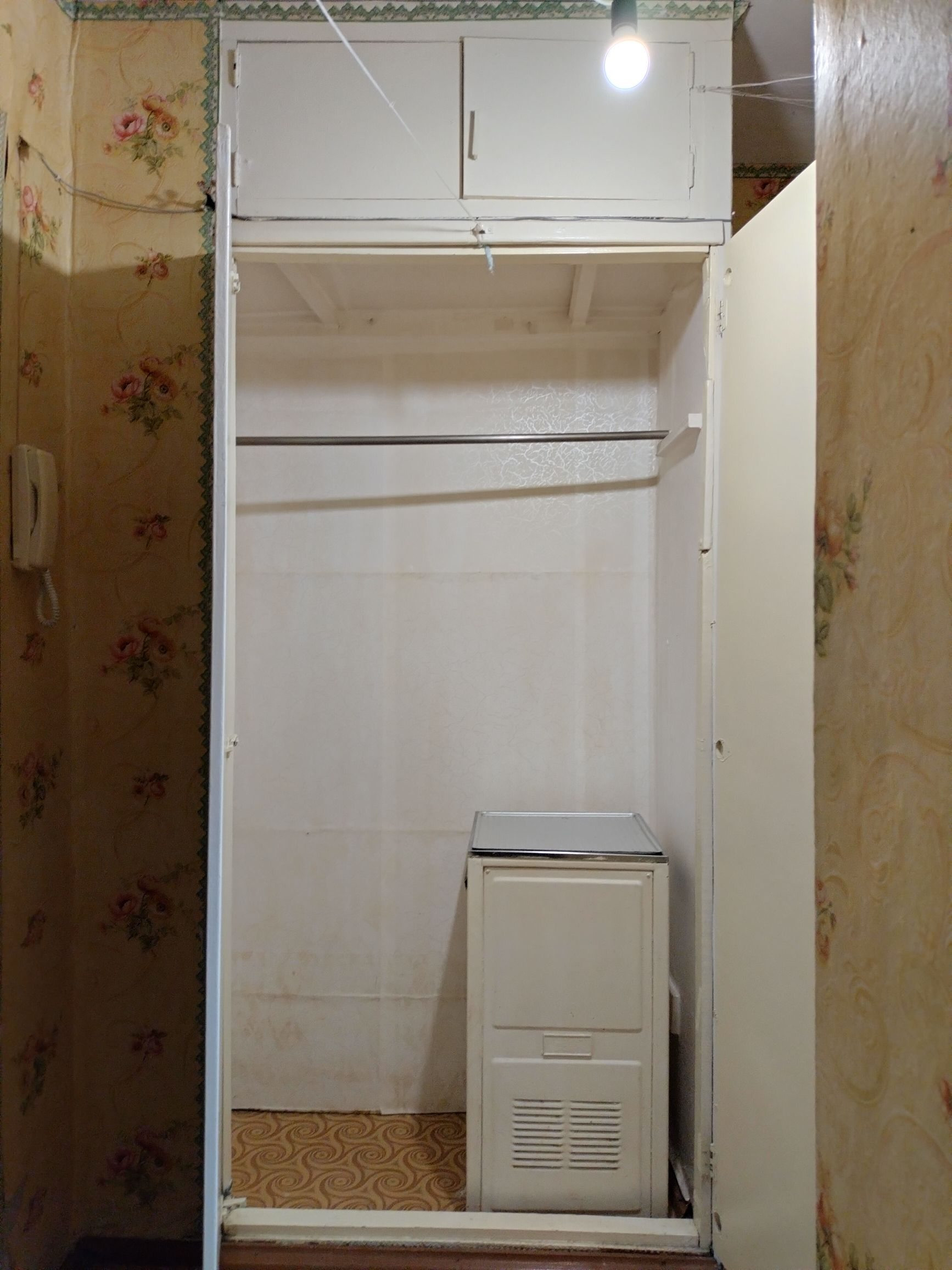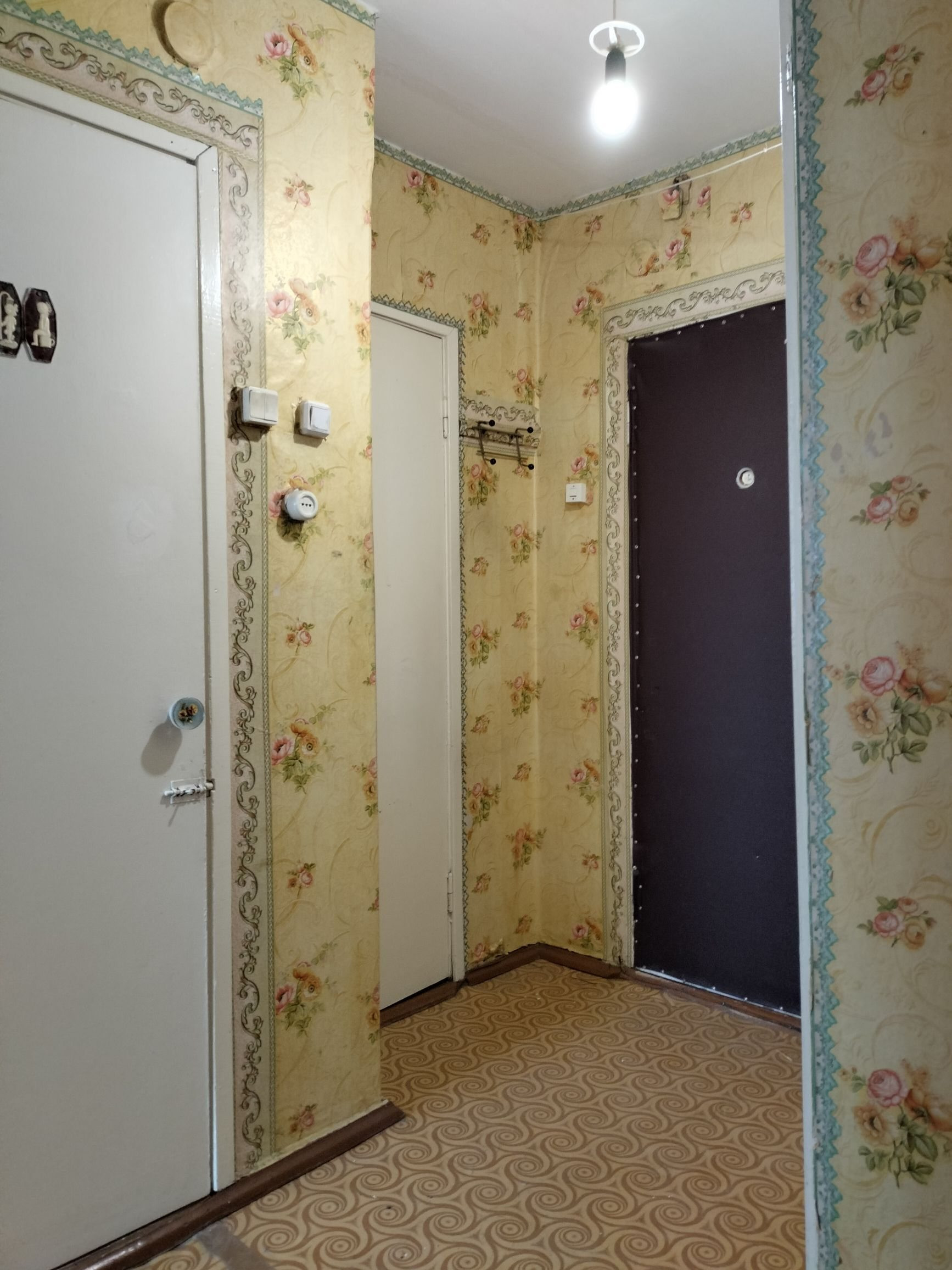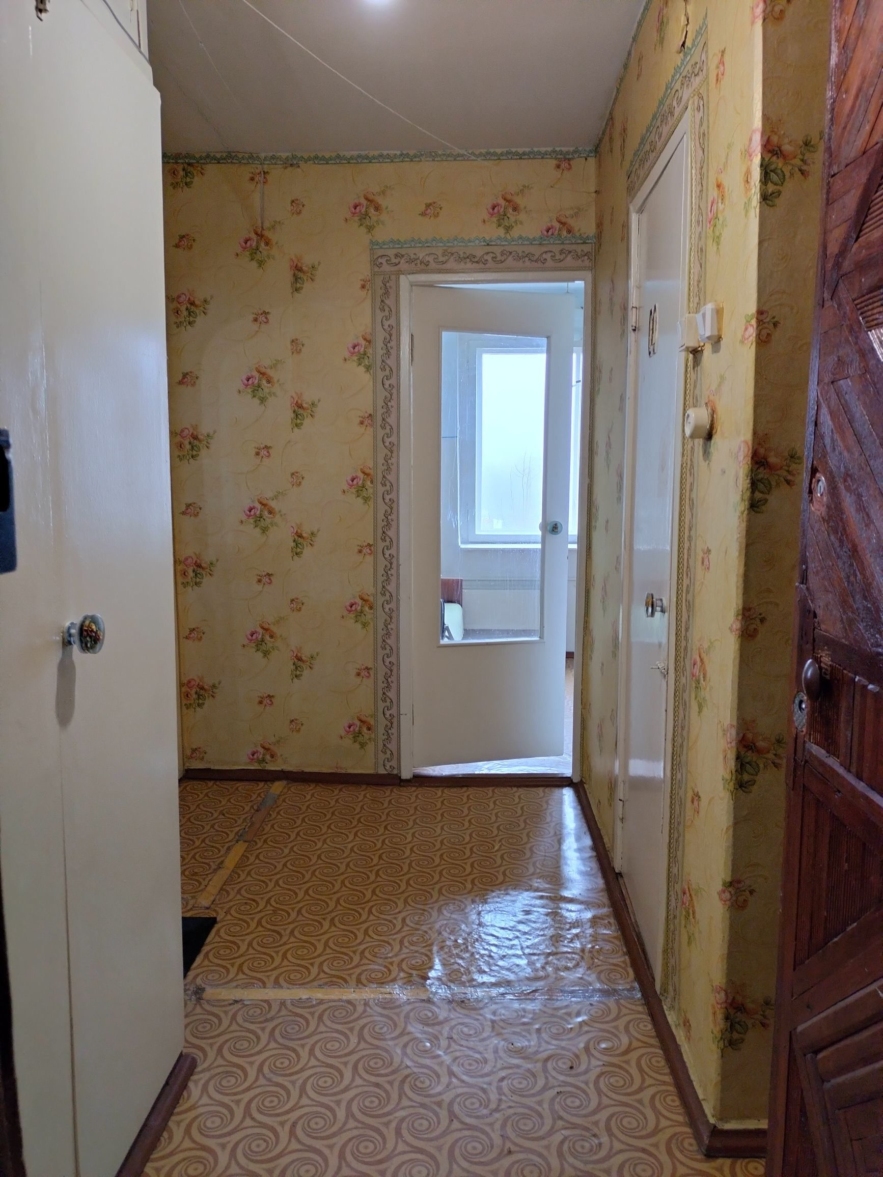 Санузел совмещённый. Просторный коридор со встроенными шкафами,отличный вариант для гардеробной.