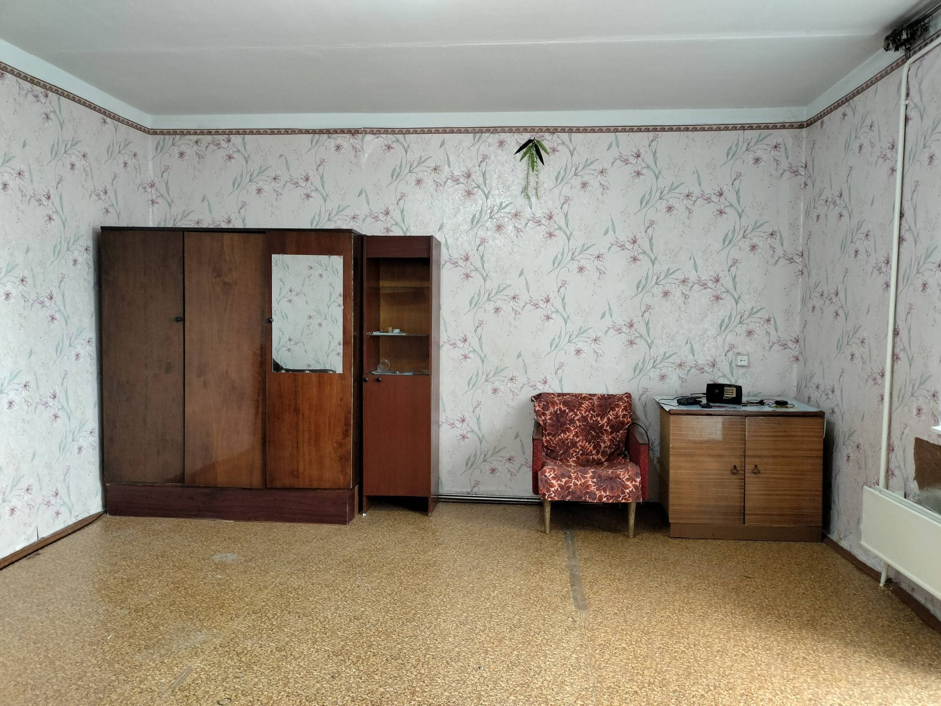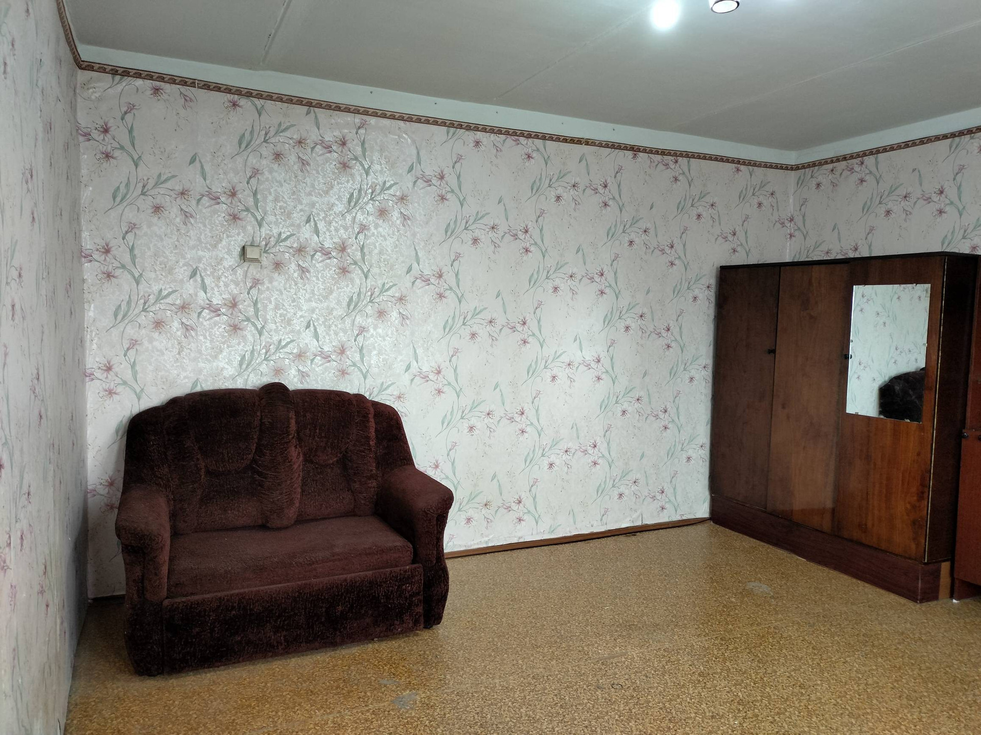Находиться на 5 этаже - 5 этажного дома. Просторная  комната с выходом на застекленный балкон.  Установлены счётчики на холодную и горячую воду.