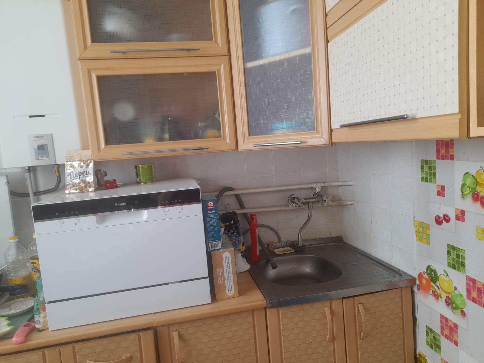 Кухонный гарнитур остаётся в подарок.