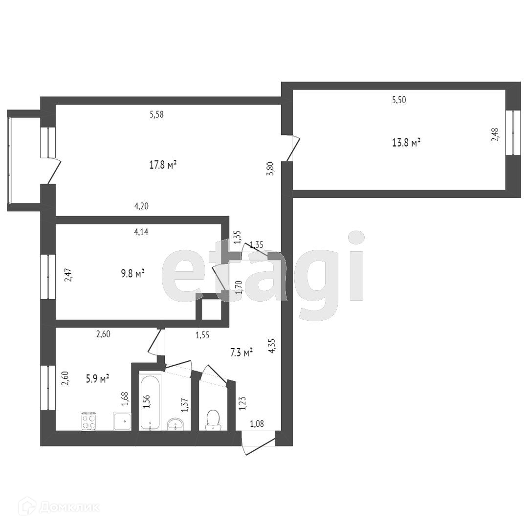 Общая площадь 55.4 м2