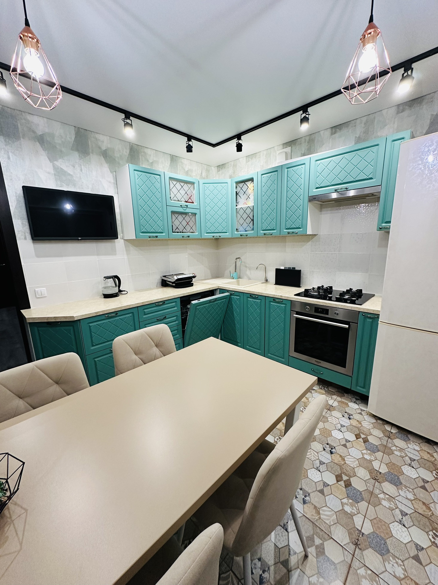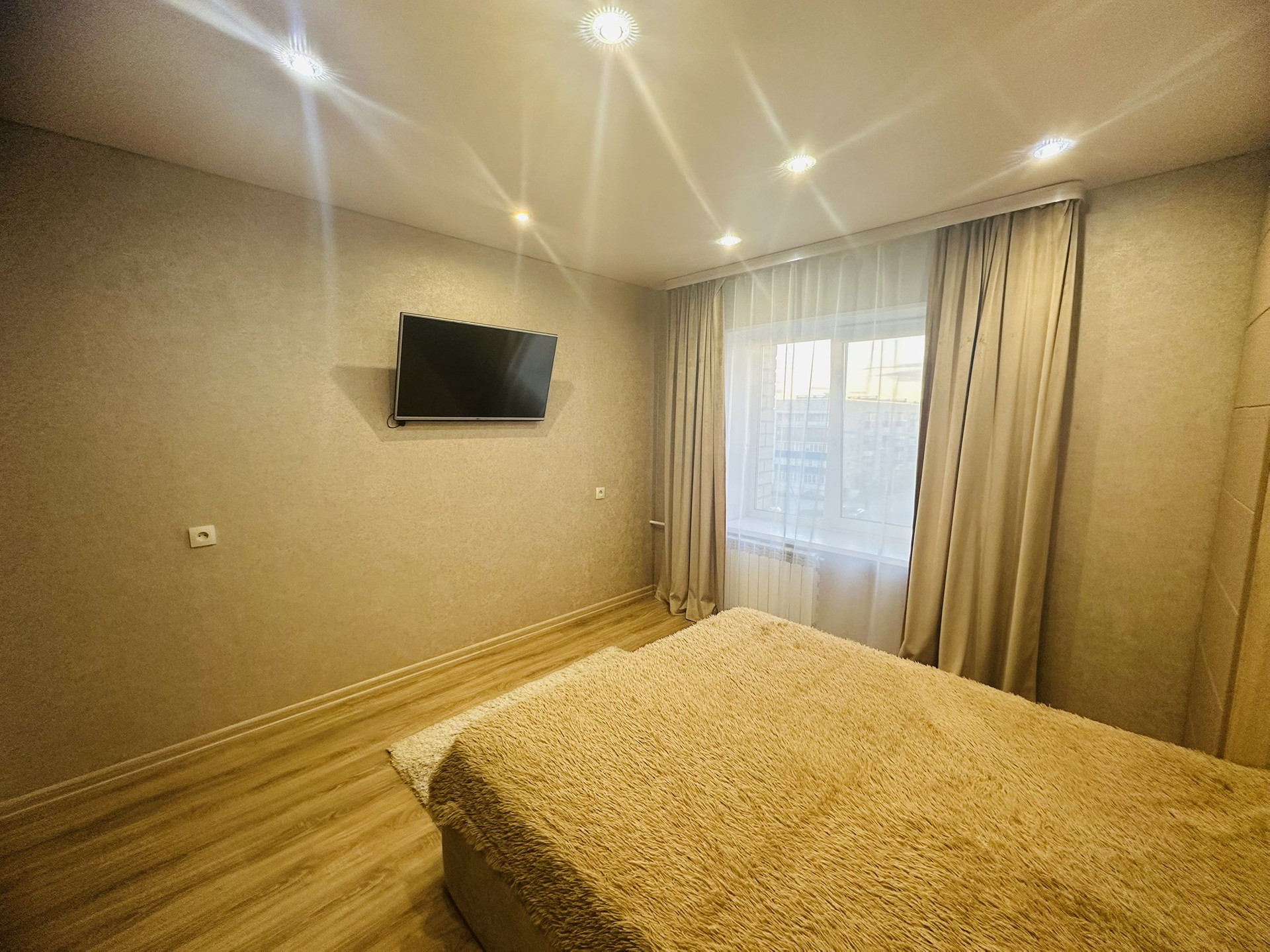 В квартире сделан хороший свежий ремонт,установлены евроокна ,межкомнатные двери,натяжные потолки.