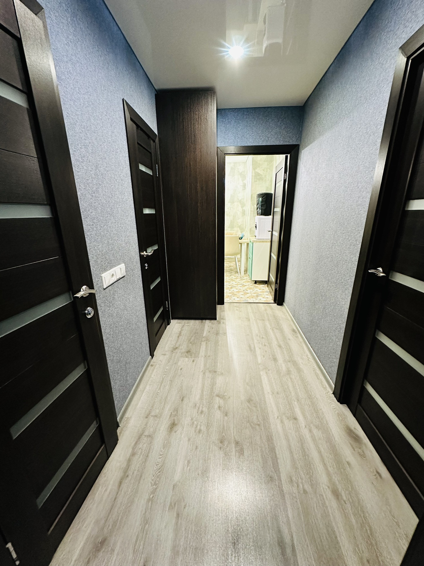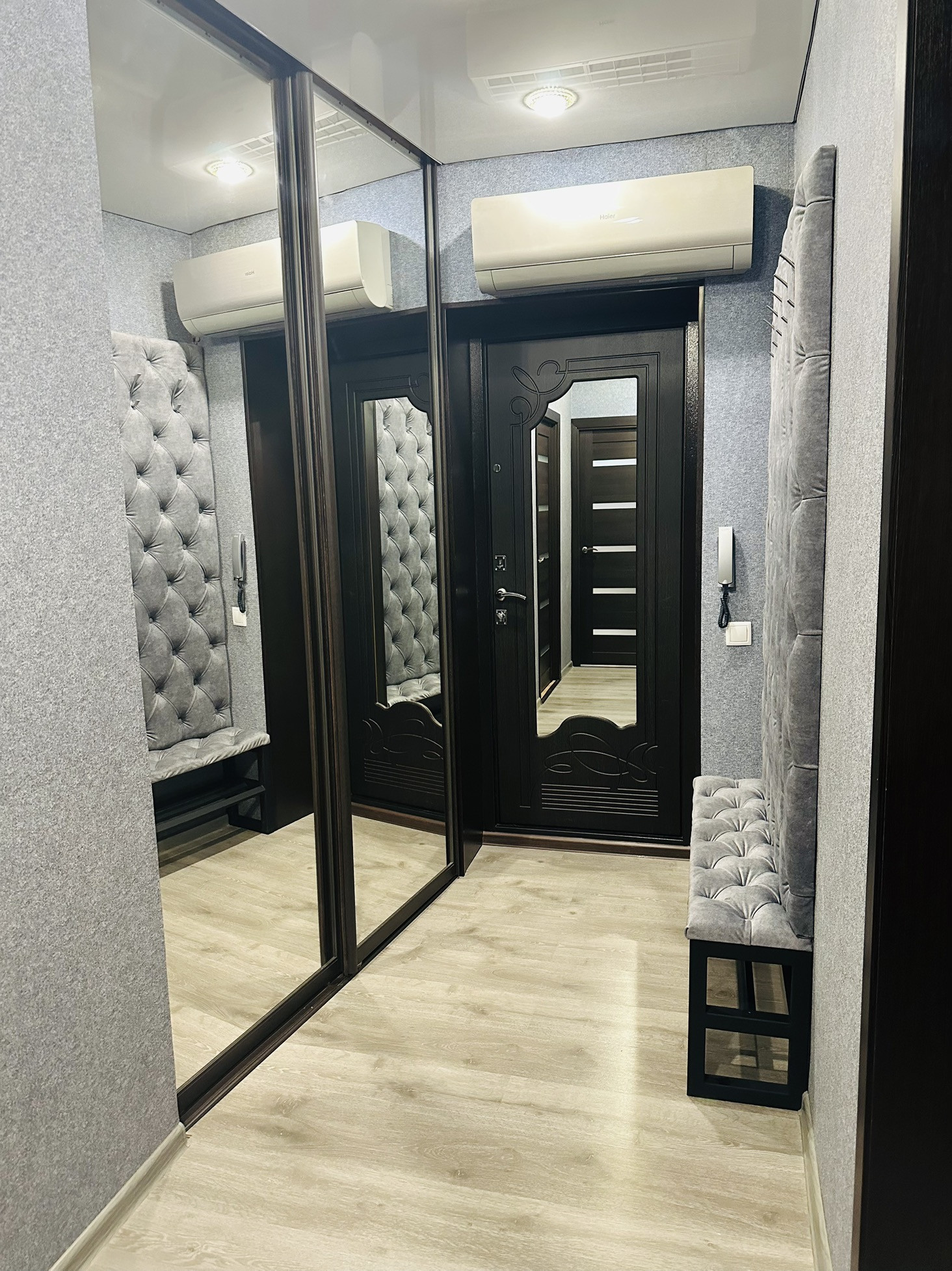 В коридоре установлен мощный кондиционер , который остужает и согревает всю квартиру в межсезонье.