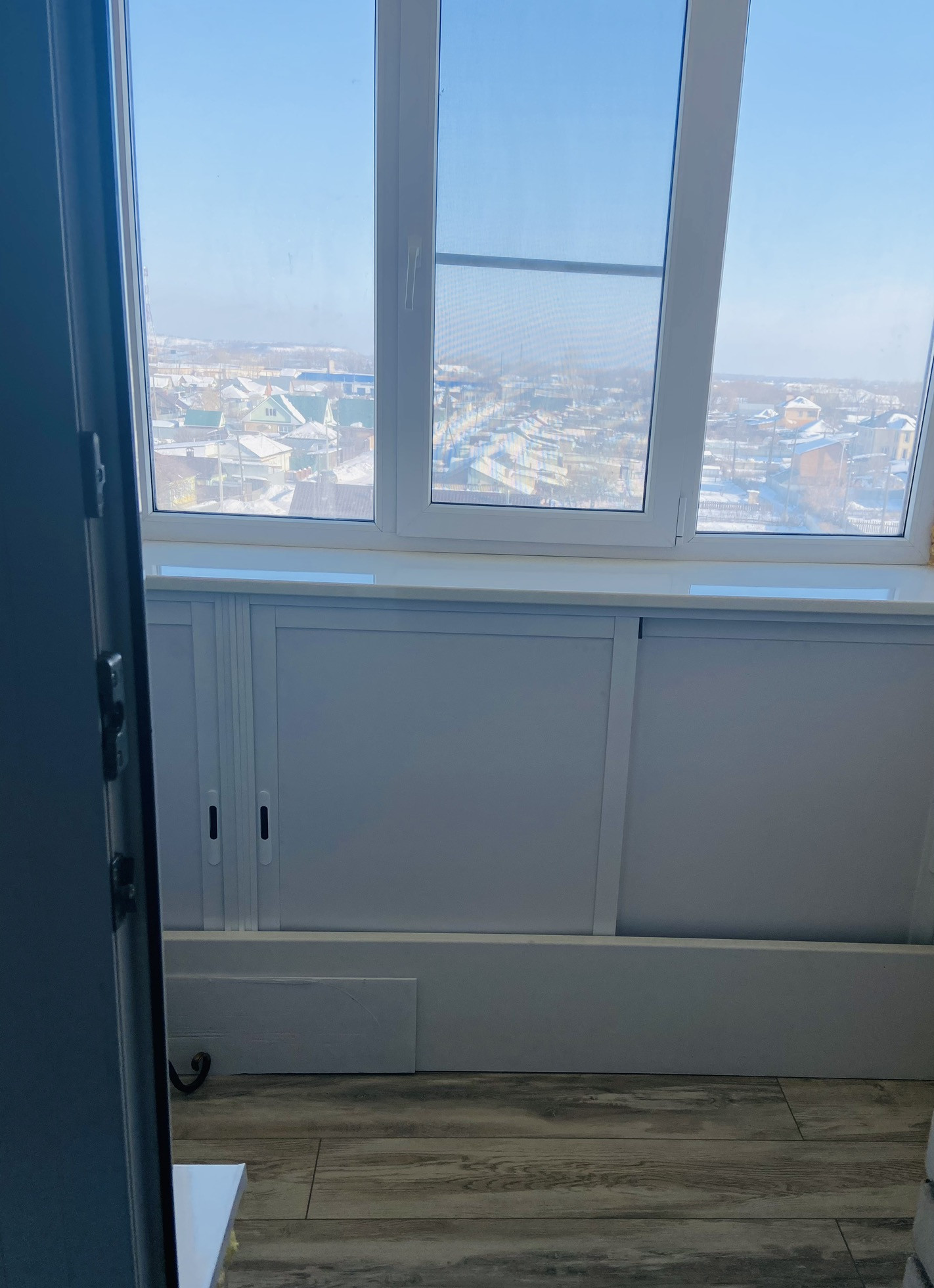Балкон остеклён и утеплён.