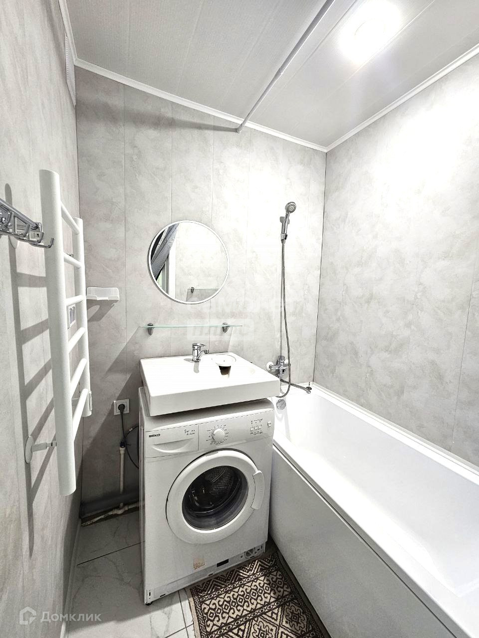 5 раздельный санузел: (в ванной установлена раковина, ванная, стиральная машина и электрическая сушилка с таймером, в туалете инсталляция, гигиенический душ, выходы под водонагреватель и розетка)