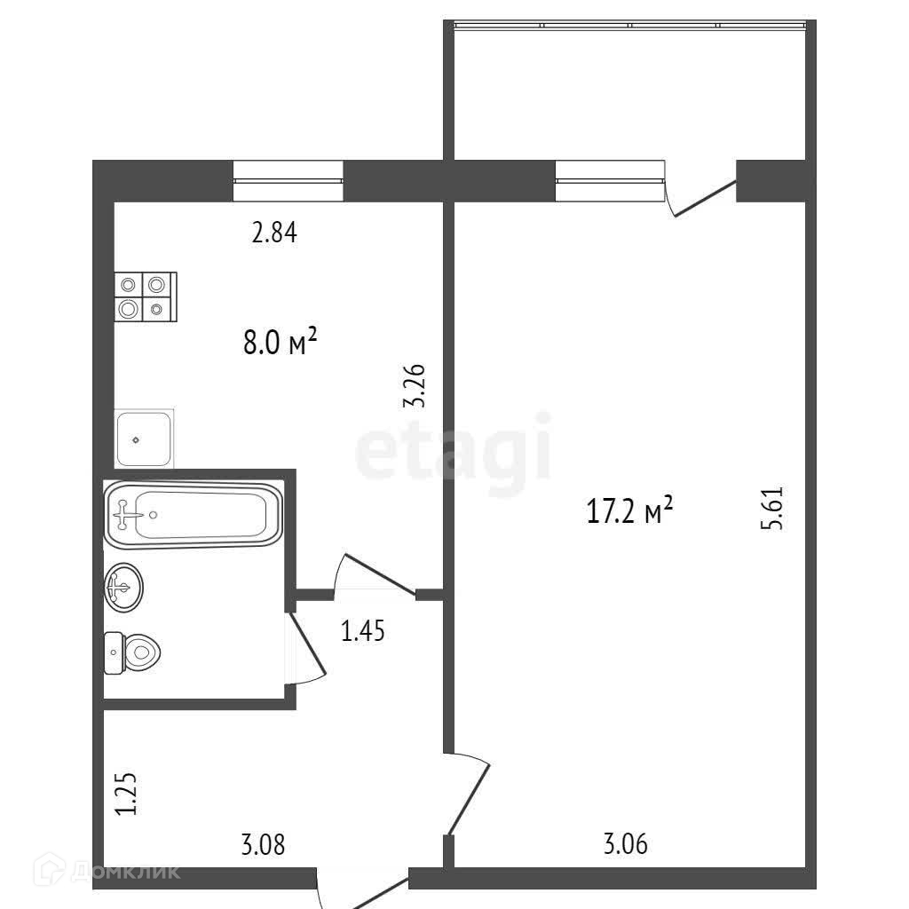Балкон, лоджия 1 балкон