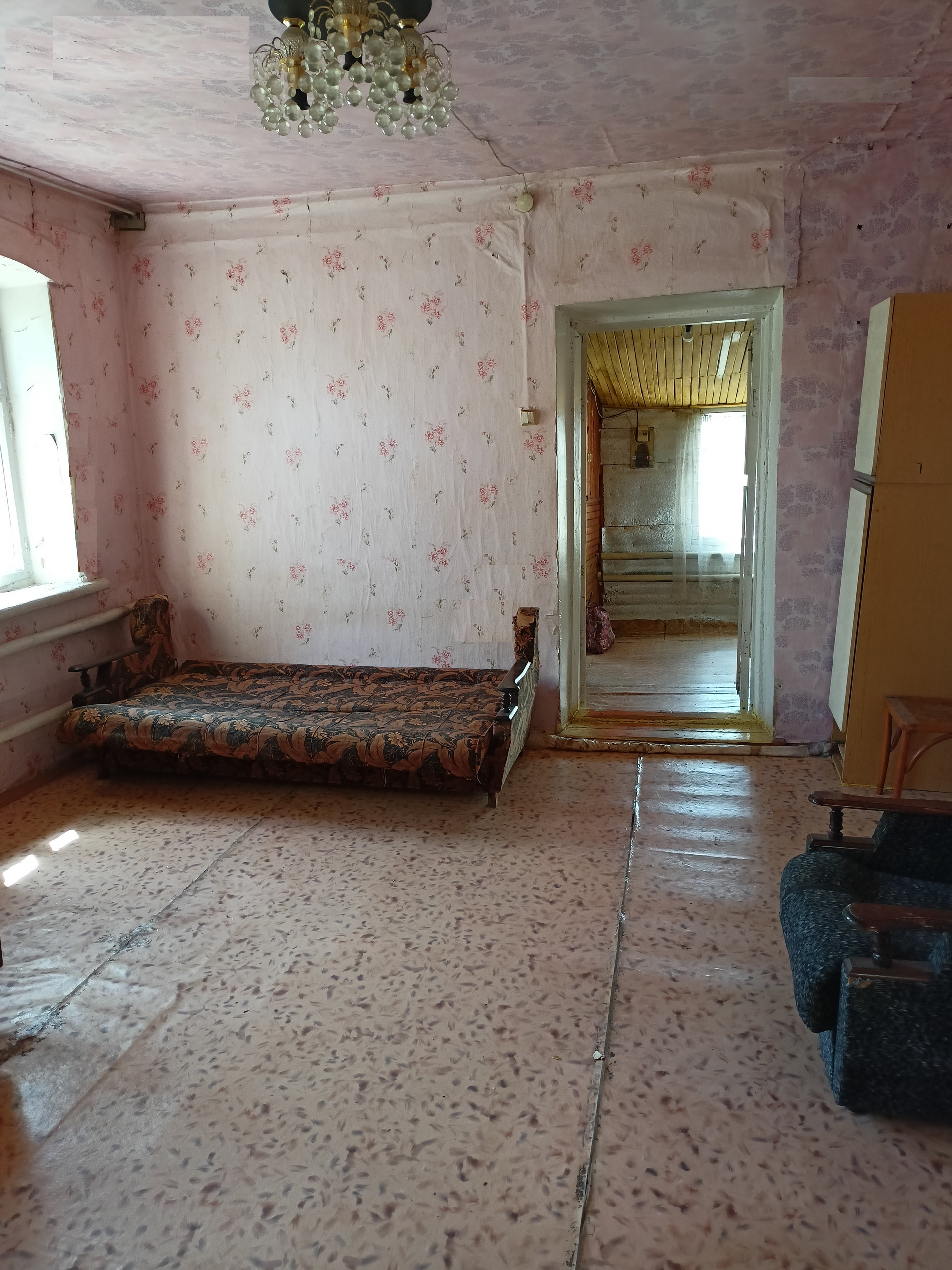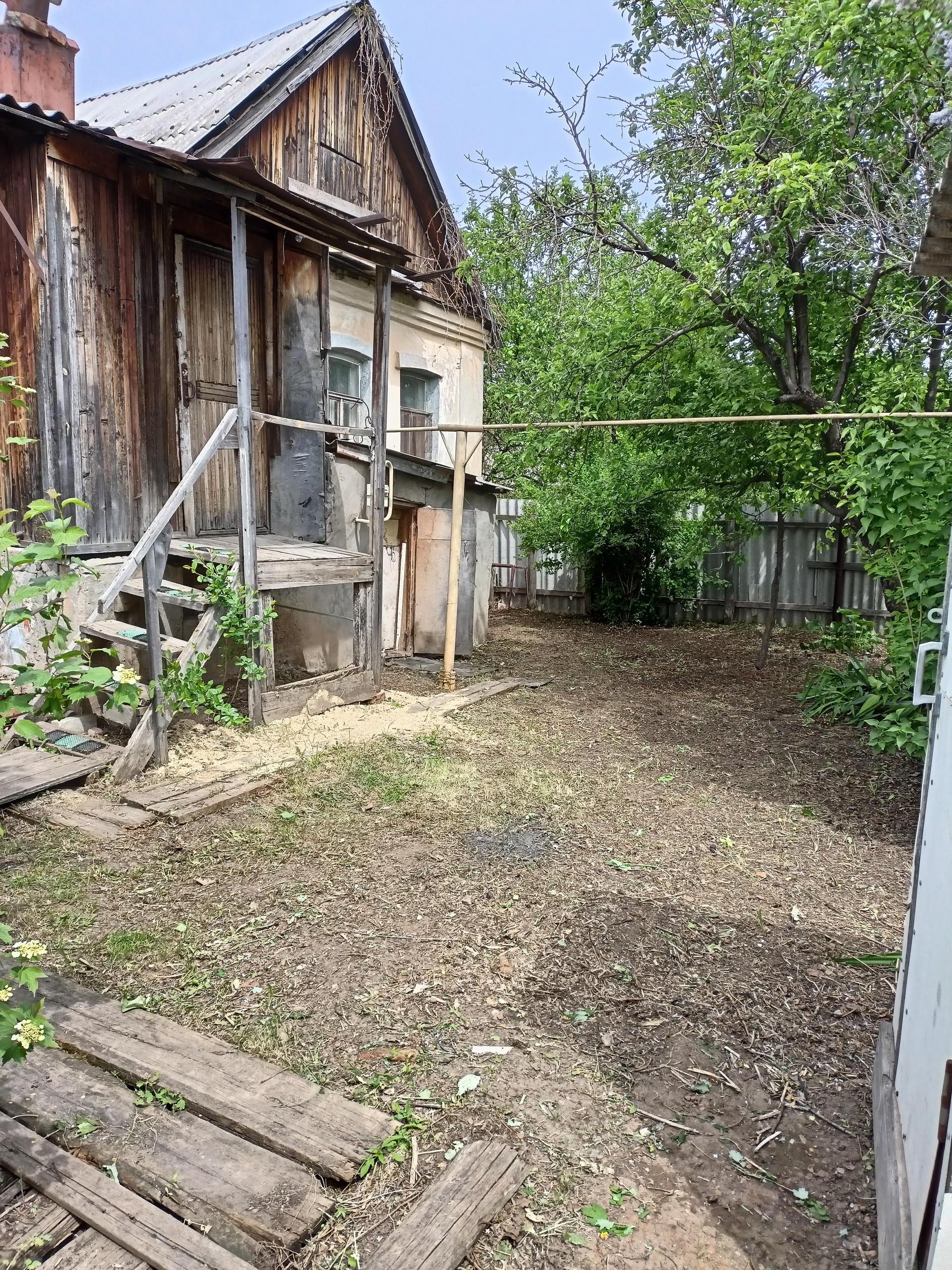 В доме газ, вода, слив. Дом разделен на две части: кирпичную и деревянную пристройку.