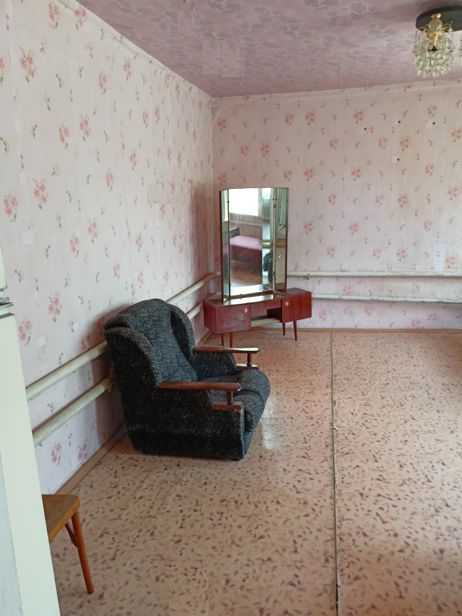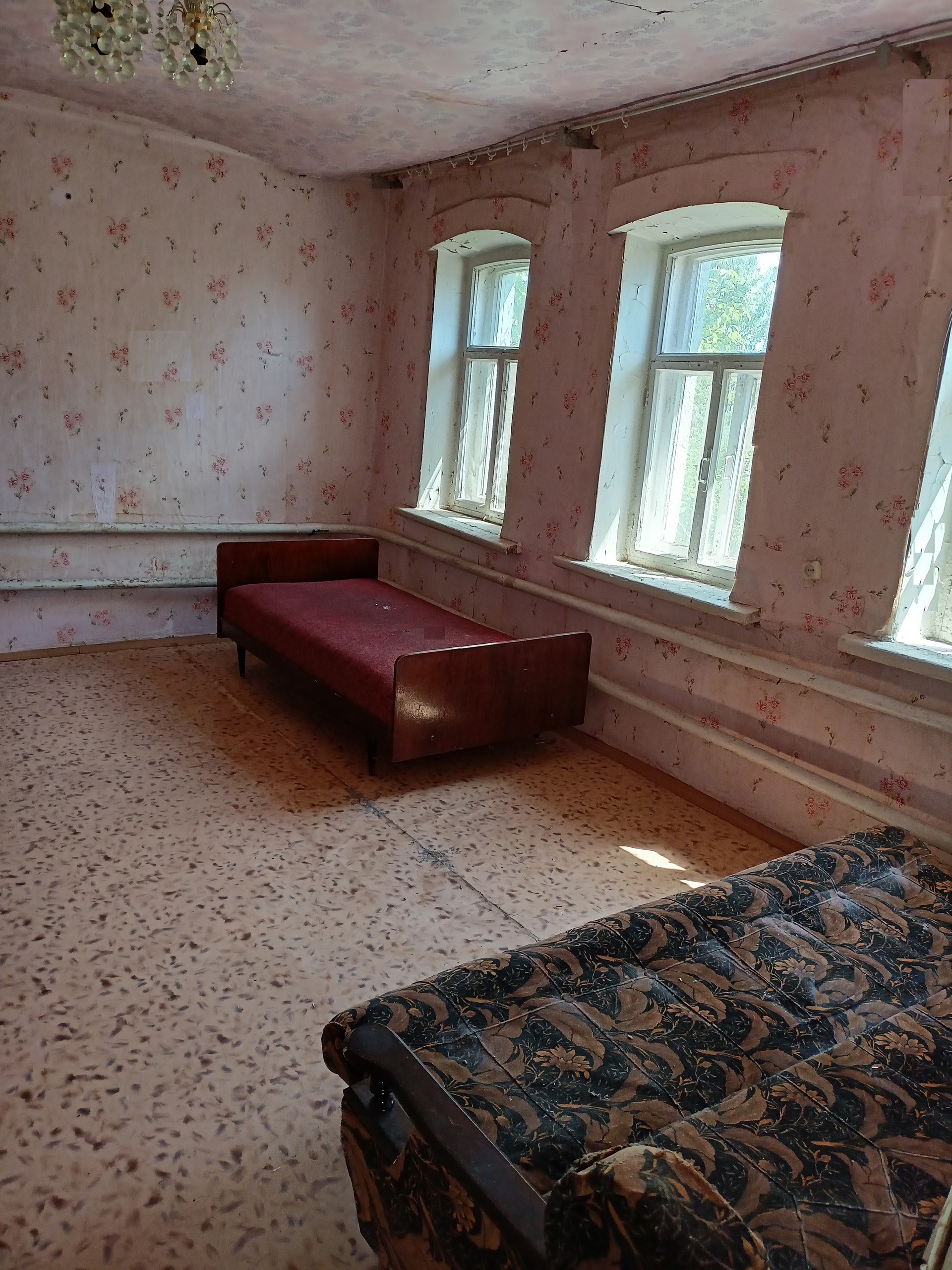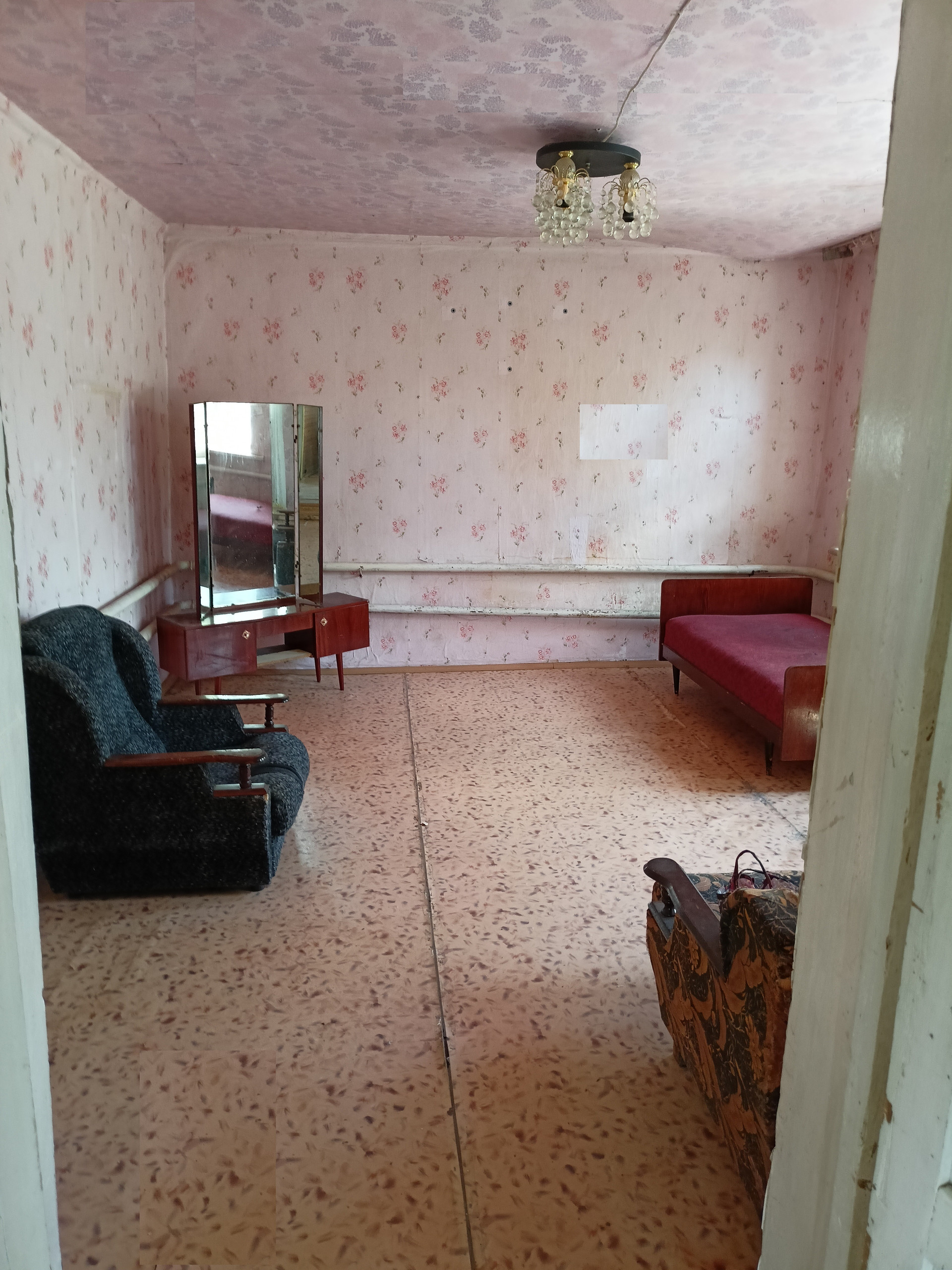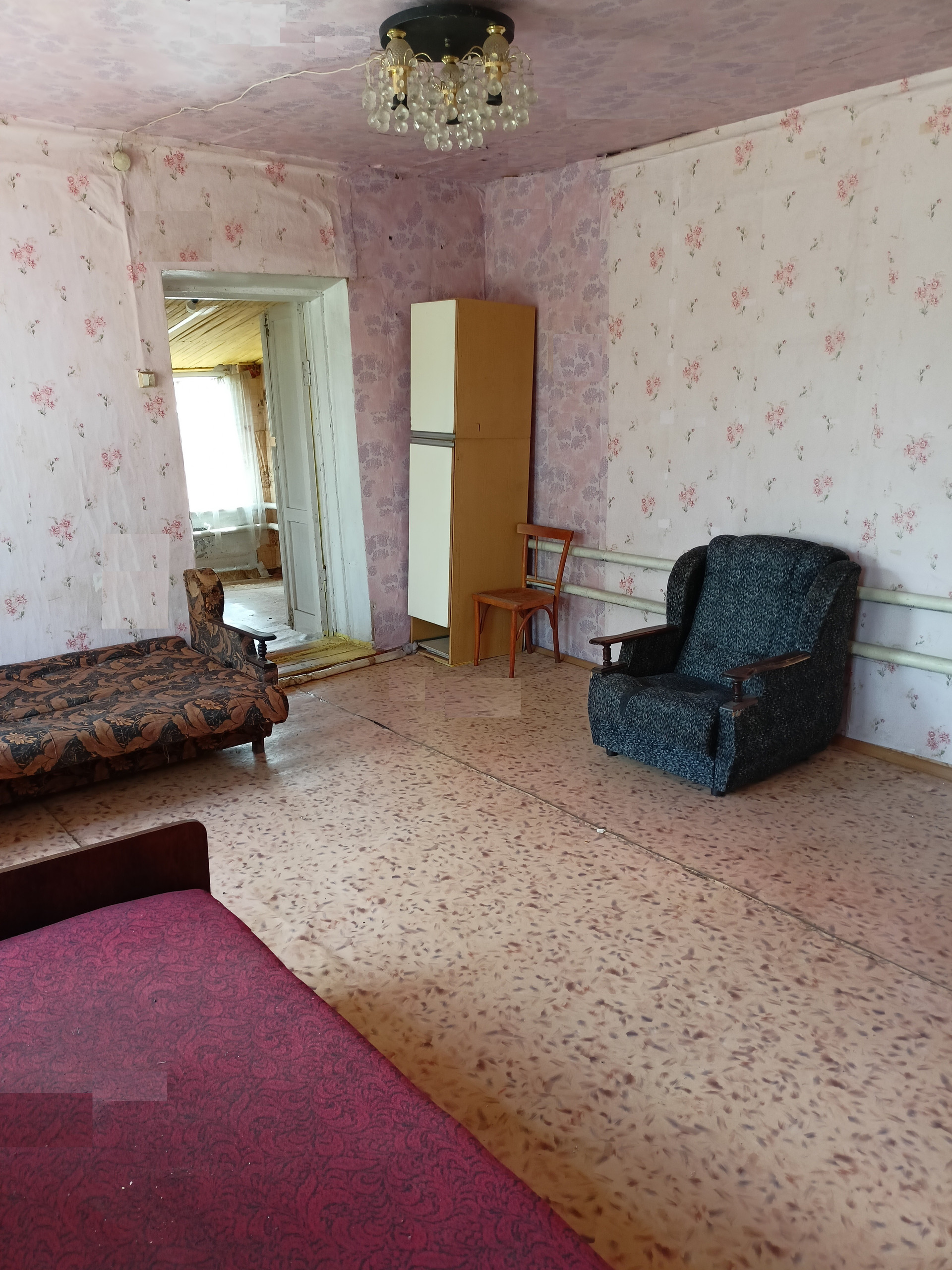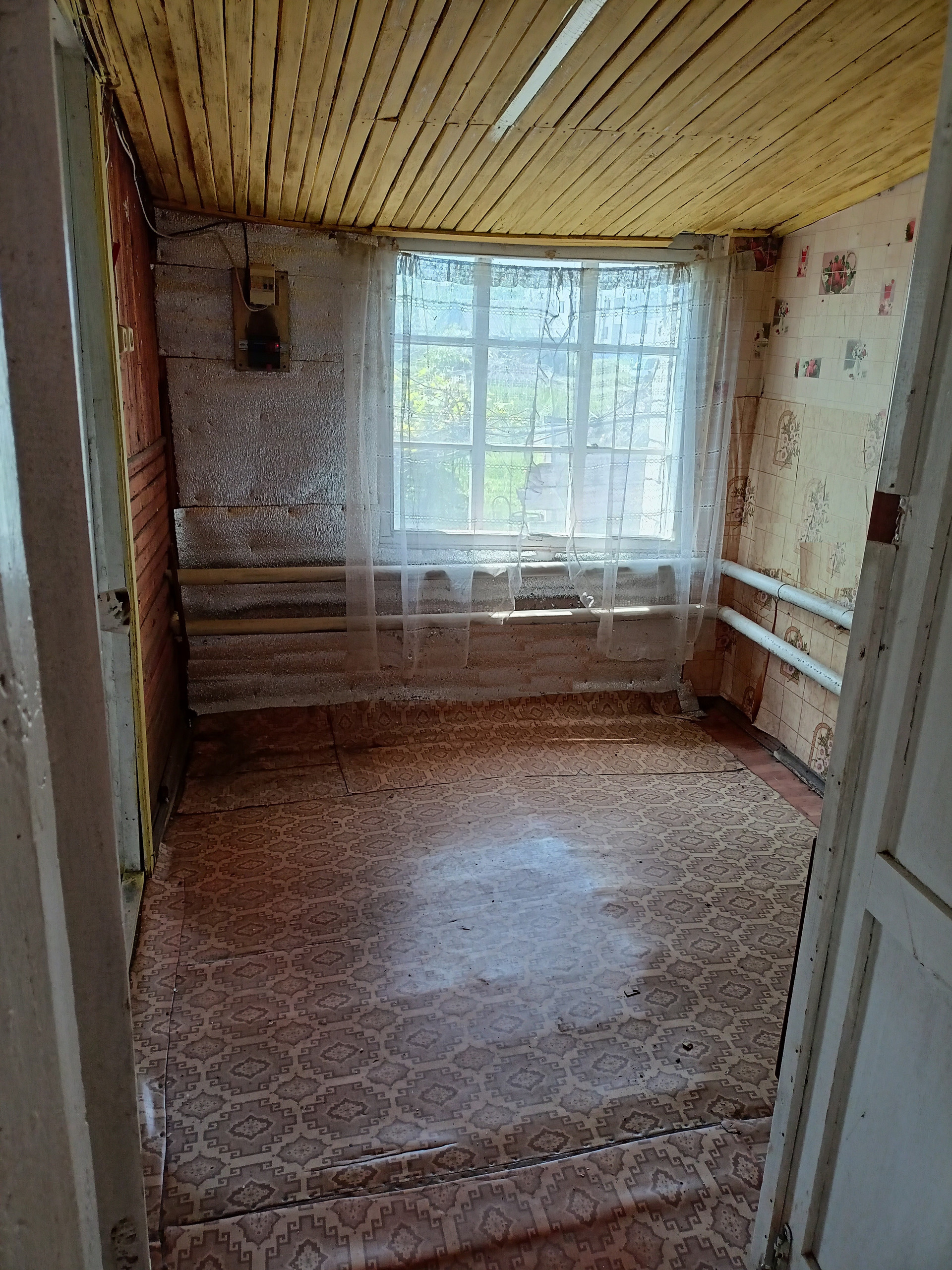 В деревянной пристройке расположены: прихожая, кухня/столовая, ванна. В кирпичной части дома расположена большая спальня, с высоким потолком (2,9 метра).