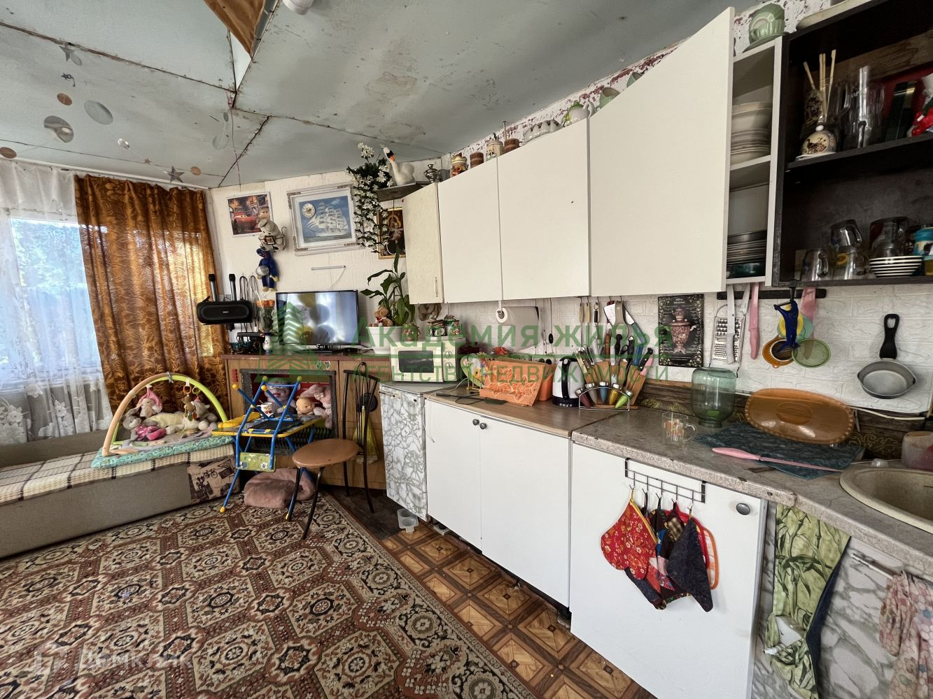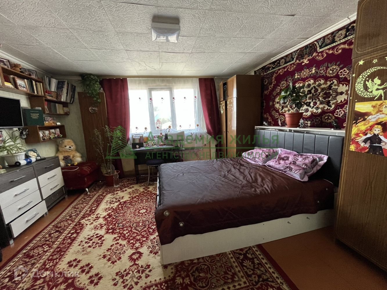 Покрытие пола - линолеум, стены оклеены обоями, окна пластиковые, металлическая входная дверь