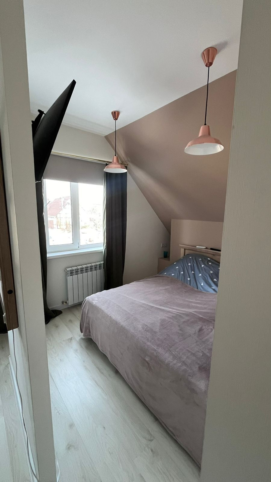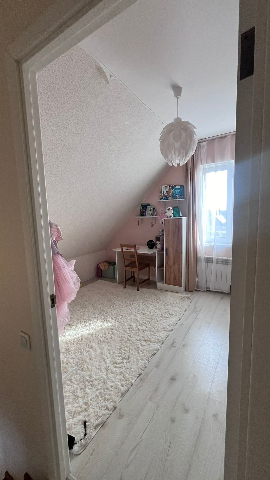 Большая комната со своим санузлом. Остается вся мебель (двуспальная кровать, рабочий стол со шкафчиком, комод)