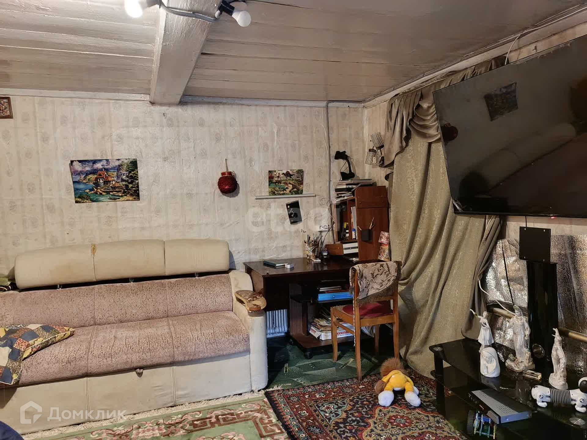 Дом находится на небольшом участке, ( 4 сотки) где есть плодовые деревья: кустарники (яблоня, груша, смородина, крыжовник, малина).