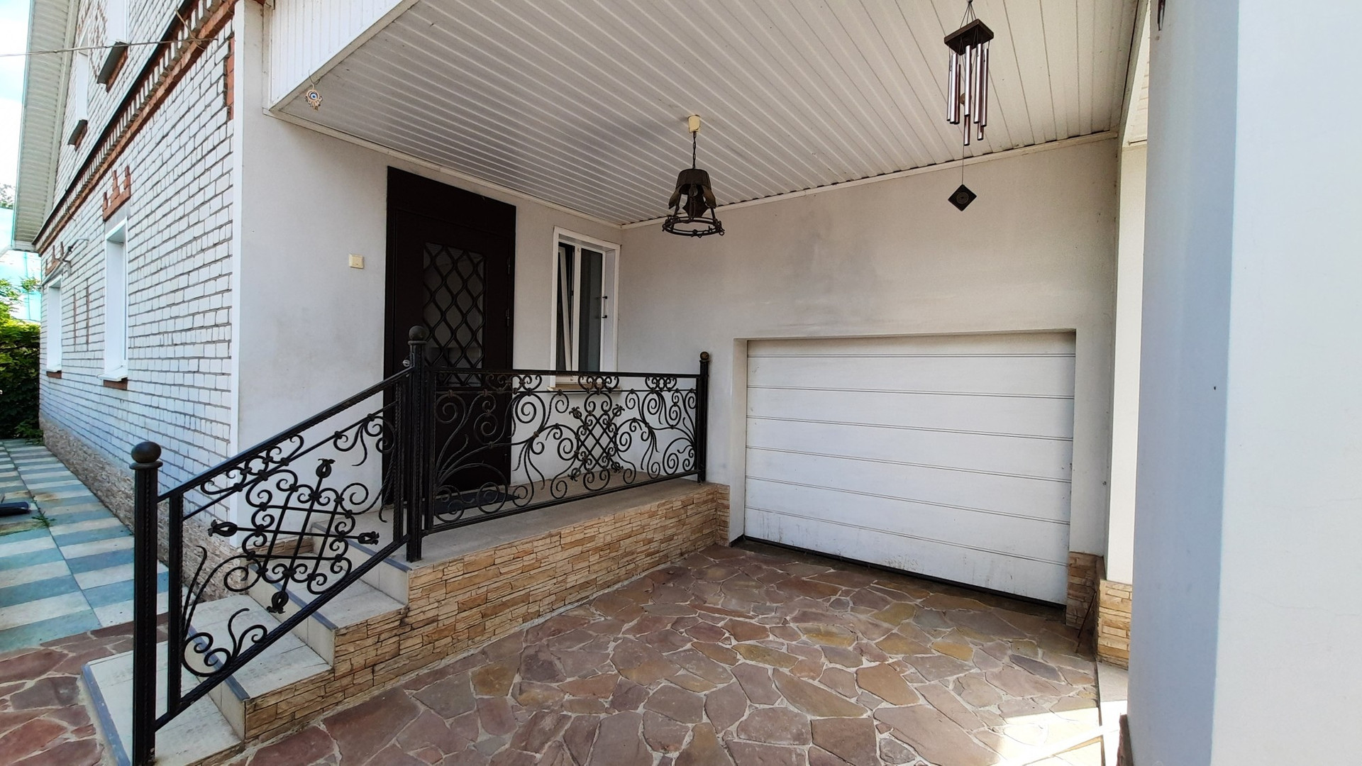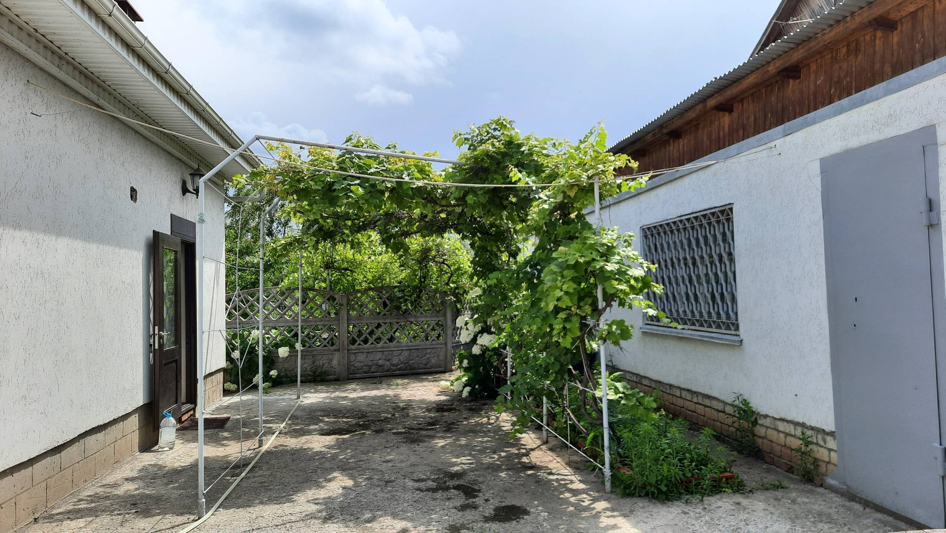 Во дворе бетонированная площадка на 2 машины. В доме два входа.