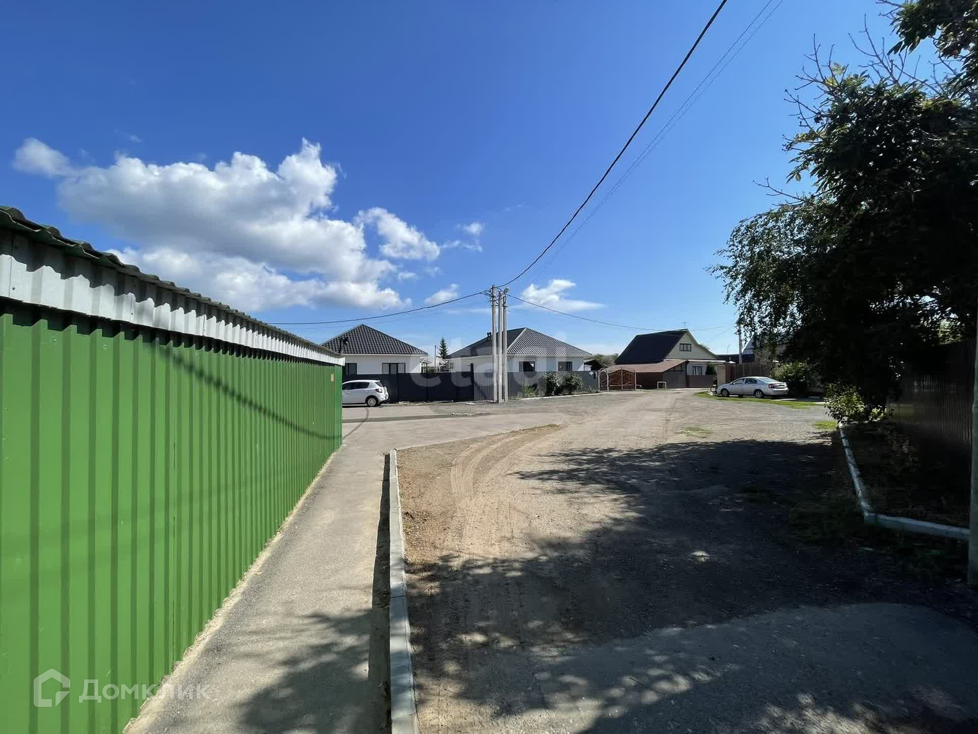 Участок огорожен профлистом, оборудовано парковочное место.