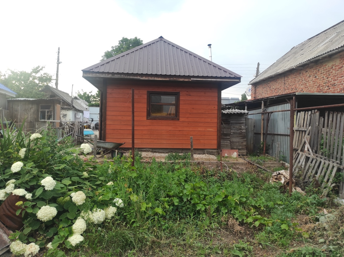Продается дом 45 кв.м. на участке 5,2 сотки в районе авторынка.  Без удобств. В доме газ, вода, свет, слив. 2 комнаты и кухня. Состояние дома жилое. На участке летняя кухня с сухим погребом, хорошая баня, хоз. постройки. Участок ухожен. Много малины, смородина, груша, яблоня - остается еще место под огород. Район очень тихий,  зеленый. На улице растет много абрикосов, вишни. Подъезд со стороны авторынка и с Маяковской. Кругом по соседству крутые коттеджи. Идеальное место для постройки нового дома. Ширина участка это позволяет (15 -16 метров). Документы готовы к продаже. Без обременений.