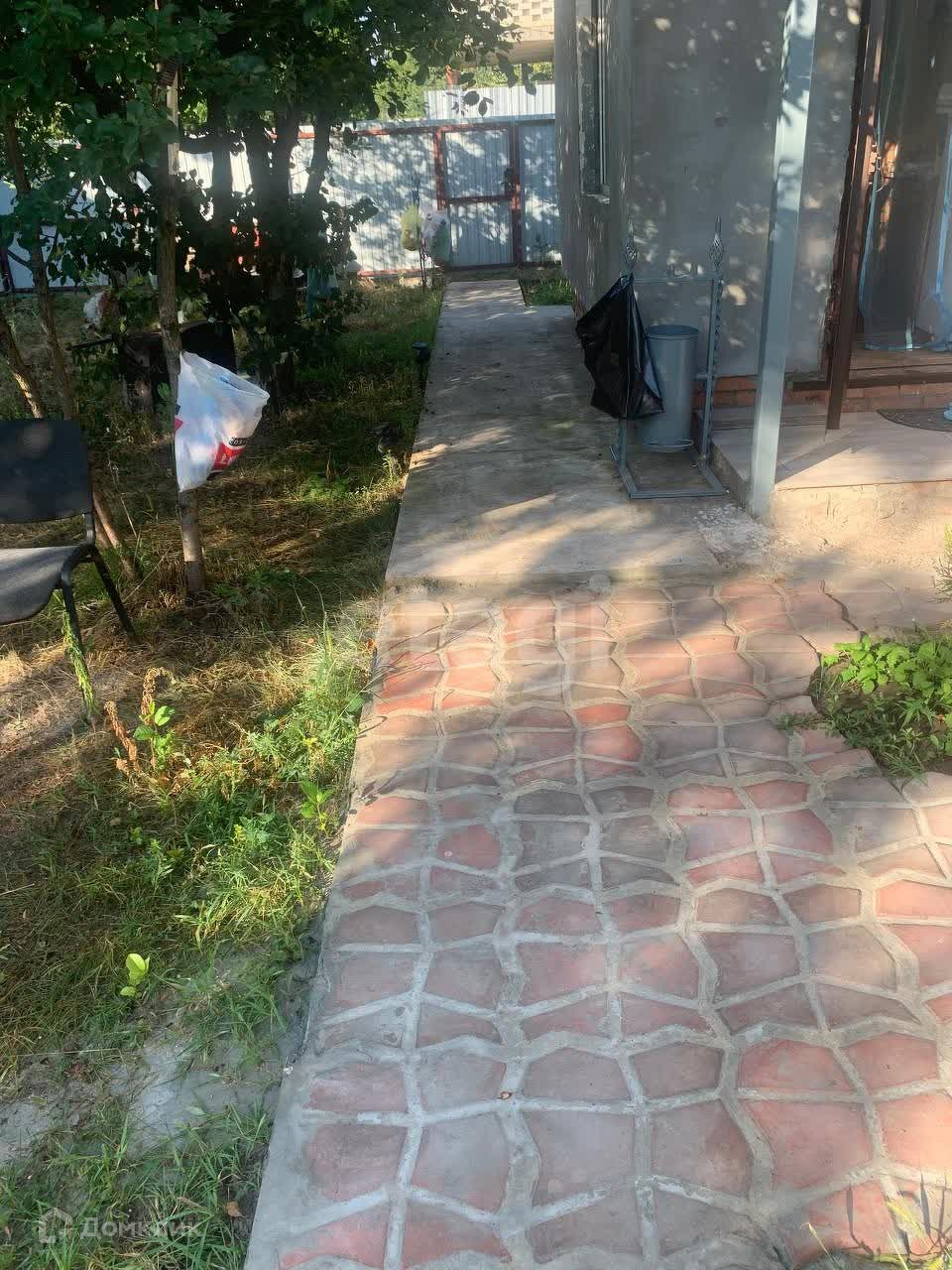 Есть душ,хозблок,ёмкость. Дорожки выложены плиткой.