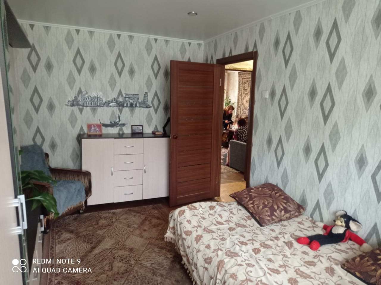 В квартире сделан частичный ремонт: добротная железная дверь, меж комнатные двери, сантехническая разводка, в комнате натяжной потолок.