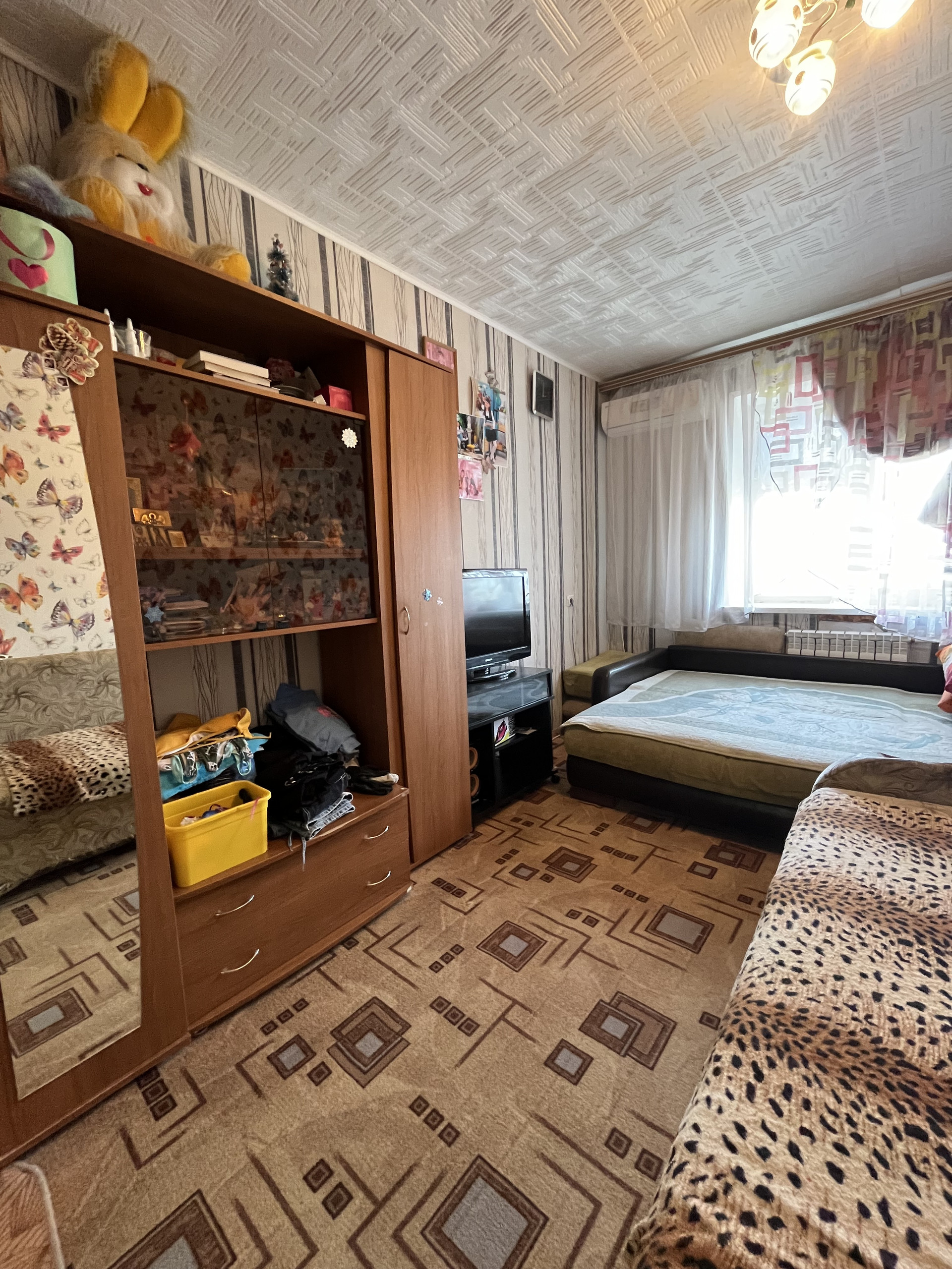 Комната теплая и светлая площадью 12 кв.м. Окно пластиковое, входная металлическая дверь, кондиционер. Имеется общий душ, санузел, кухня. Все соседи дружелюбные, семейные.