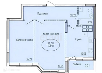 Общая площадь: 58.6 м2