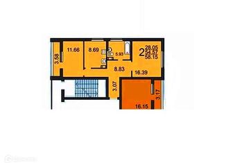 Продам двухкомнатную квартиру, 57.66 м2, улица Маяковского, 44