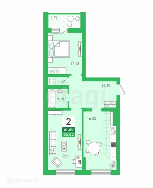 Общая площадь 61.6 м2