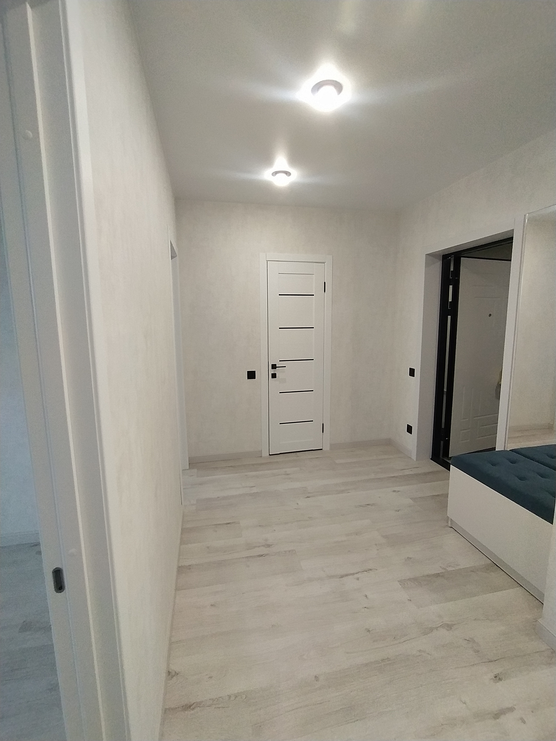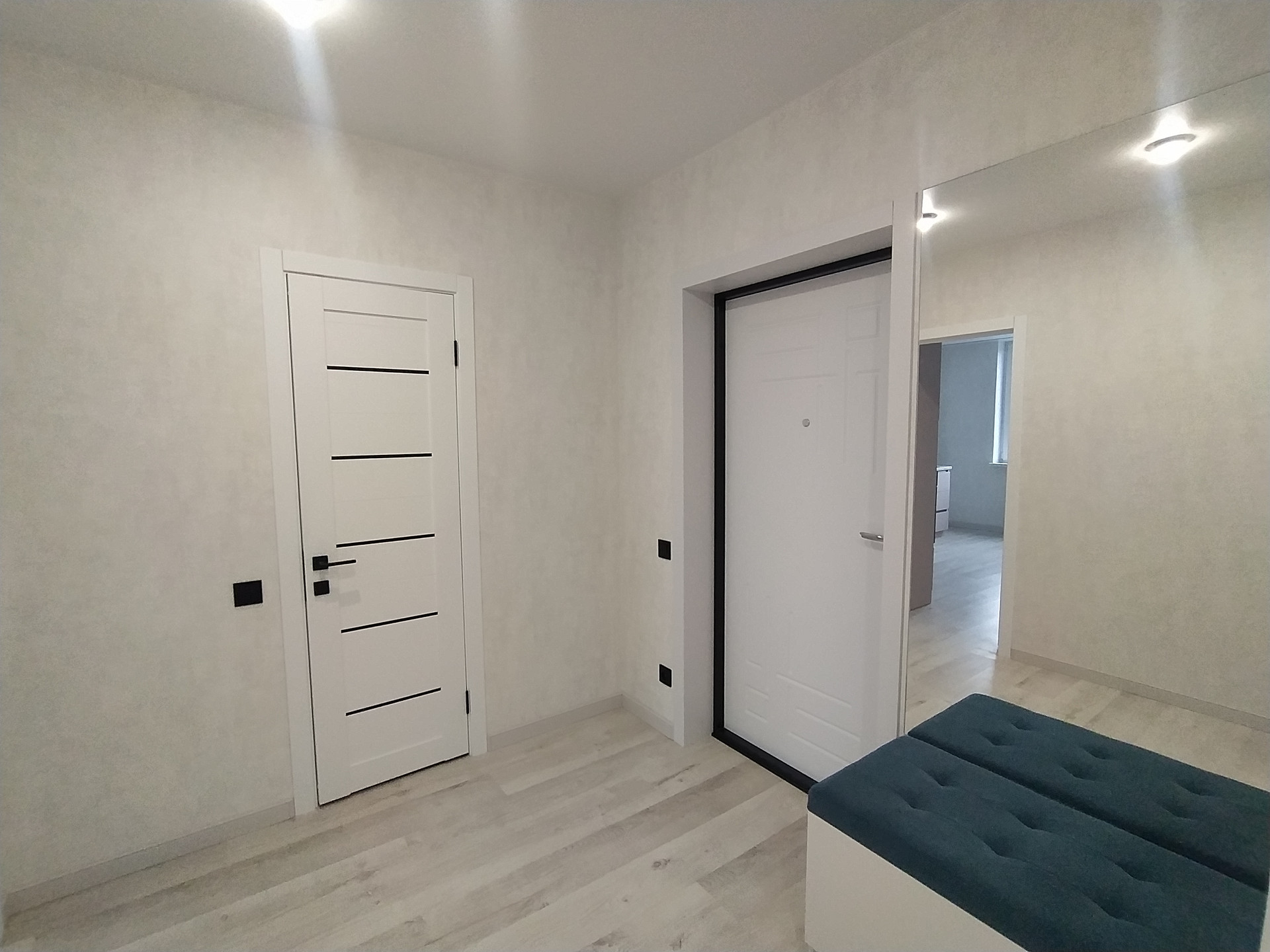 В прихожей установлены 2 вместительных шкафа купе, Дорогая входная дверь .