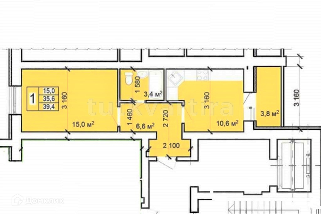 Общая площадь 39,4 кв.м