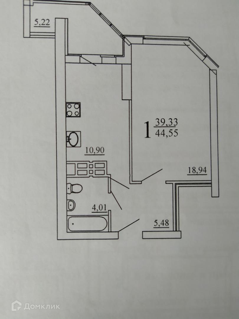 Общая площадь 44.55 м2