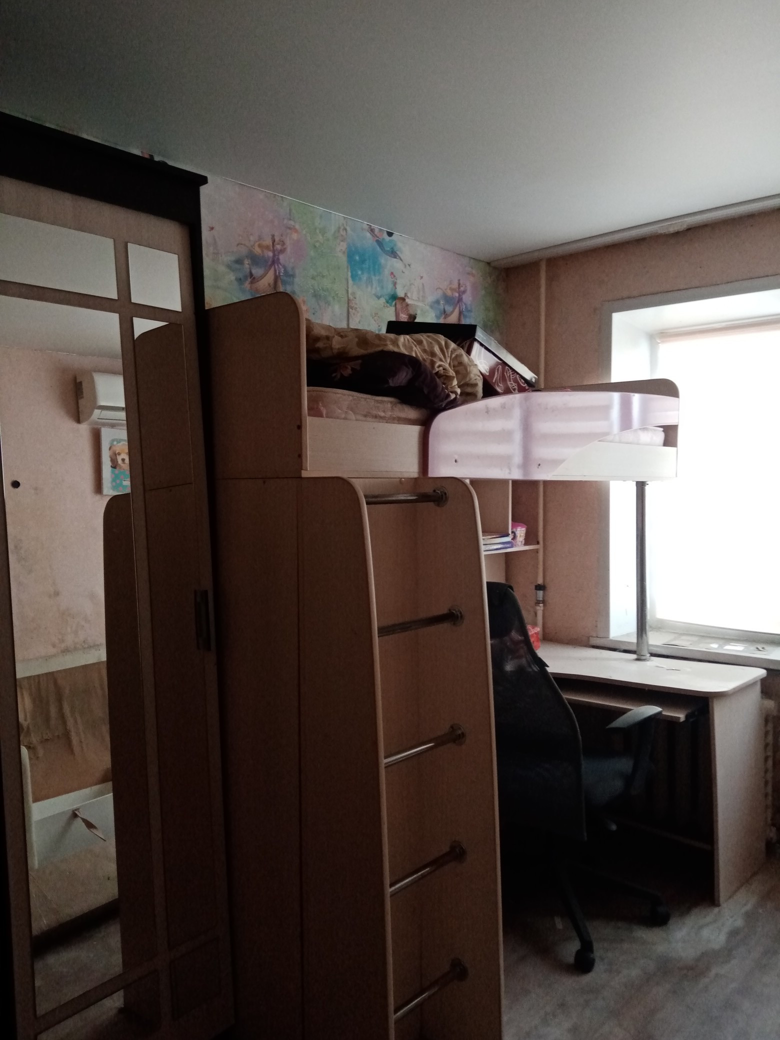 Продам квартиру в районе 1 школы гостиничного типа, пластиковое окно, натяжные потолки, горячая холодная вода душ, туалет, квартира требует ремонта, соседи хорошие,  секция чистая, документы готовы к продаже,