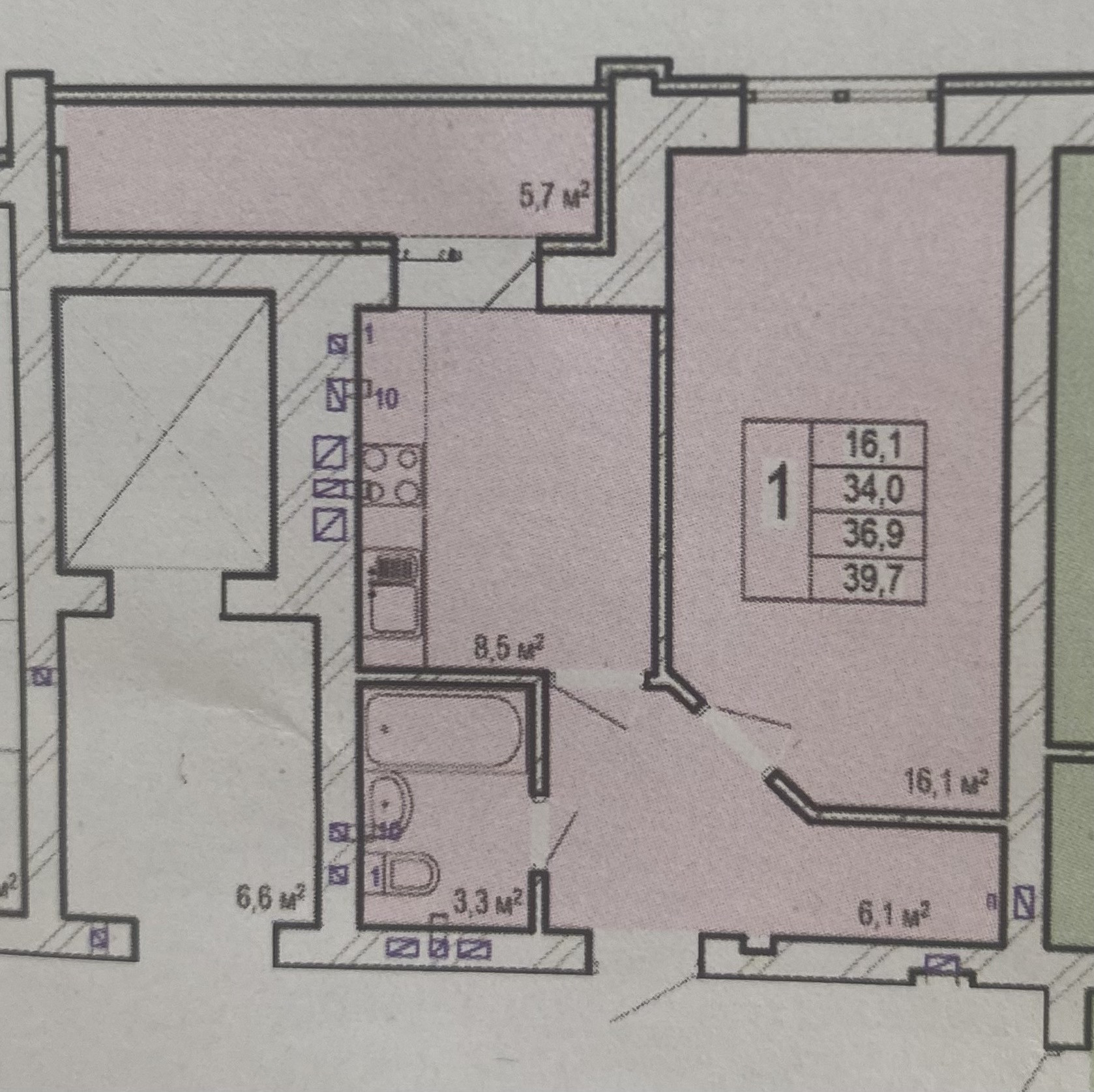 Общая площадь 34 м2