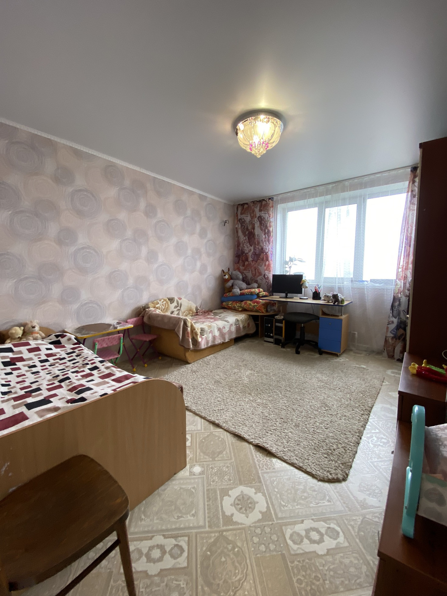 Просторная кухня-гостиная и две изолированные спальни. Гардеробная. Лоджия застеклена. Раздельный санузел. Счетчики на воду, тепло, свет.