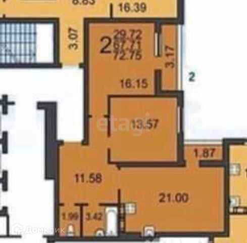 Двухкомнатная Квартира общей площадью - 72,75 кв.м. (по проекту квартира сдается без возведения межкомнатных перегородок)