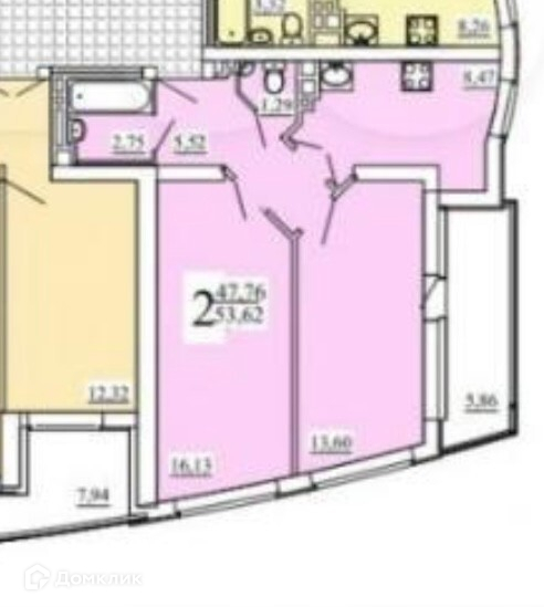 Общая площадь 47.8 м2