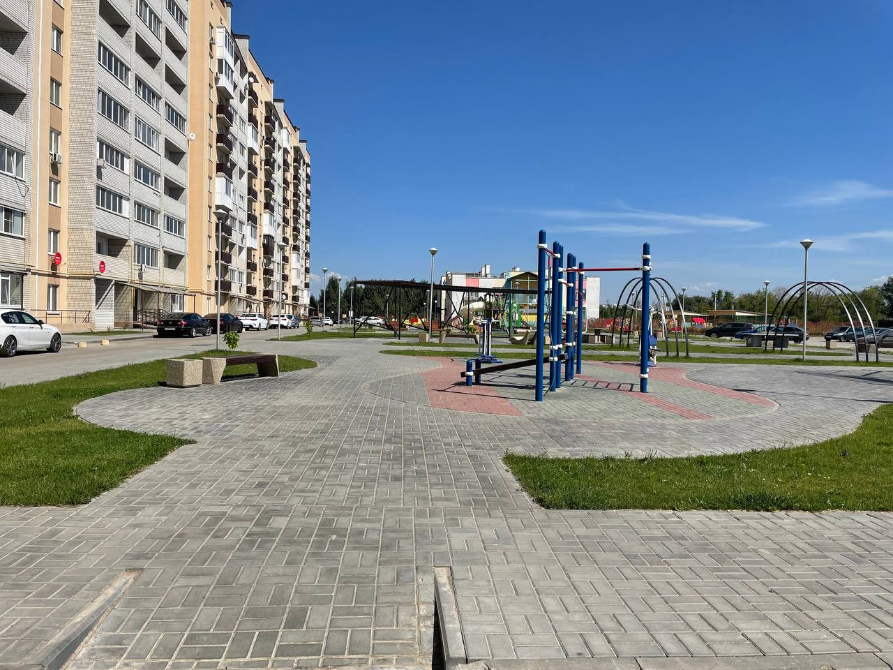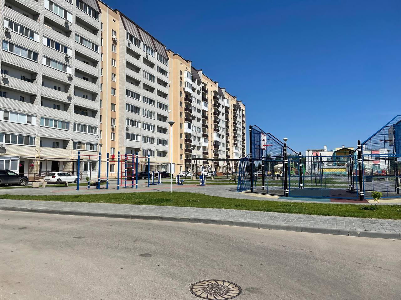 во дворе спортивная и детская площадка