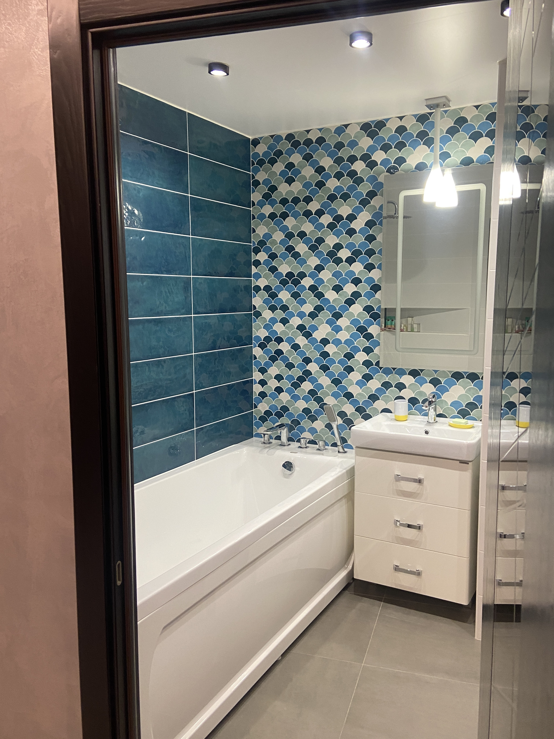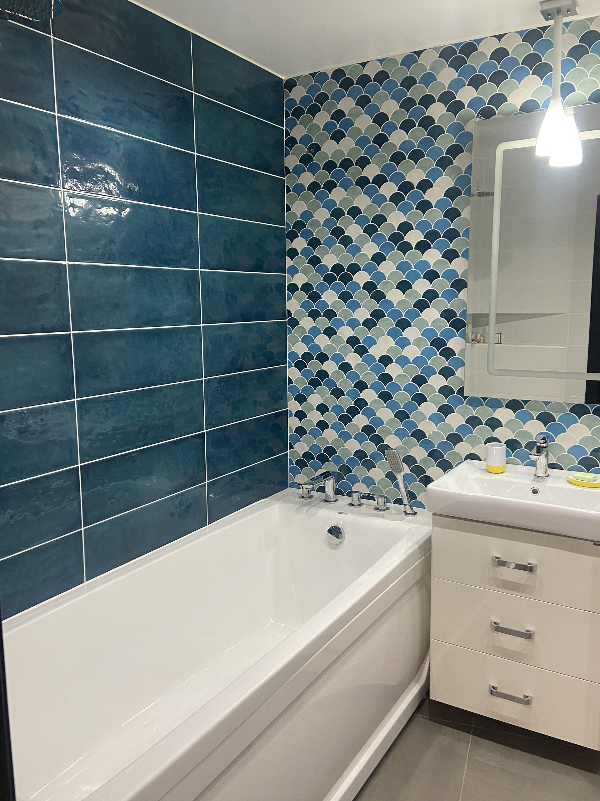Плитка в ванной Рыбья чешуя – ручная работа