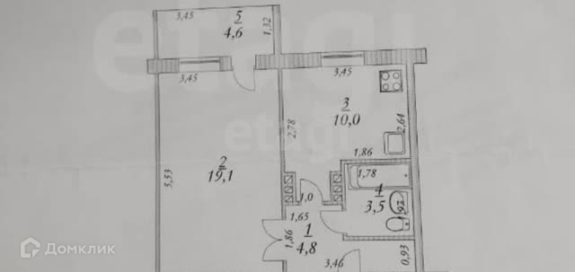 Общая площадь 37.3 м2