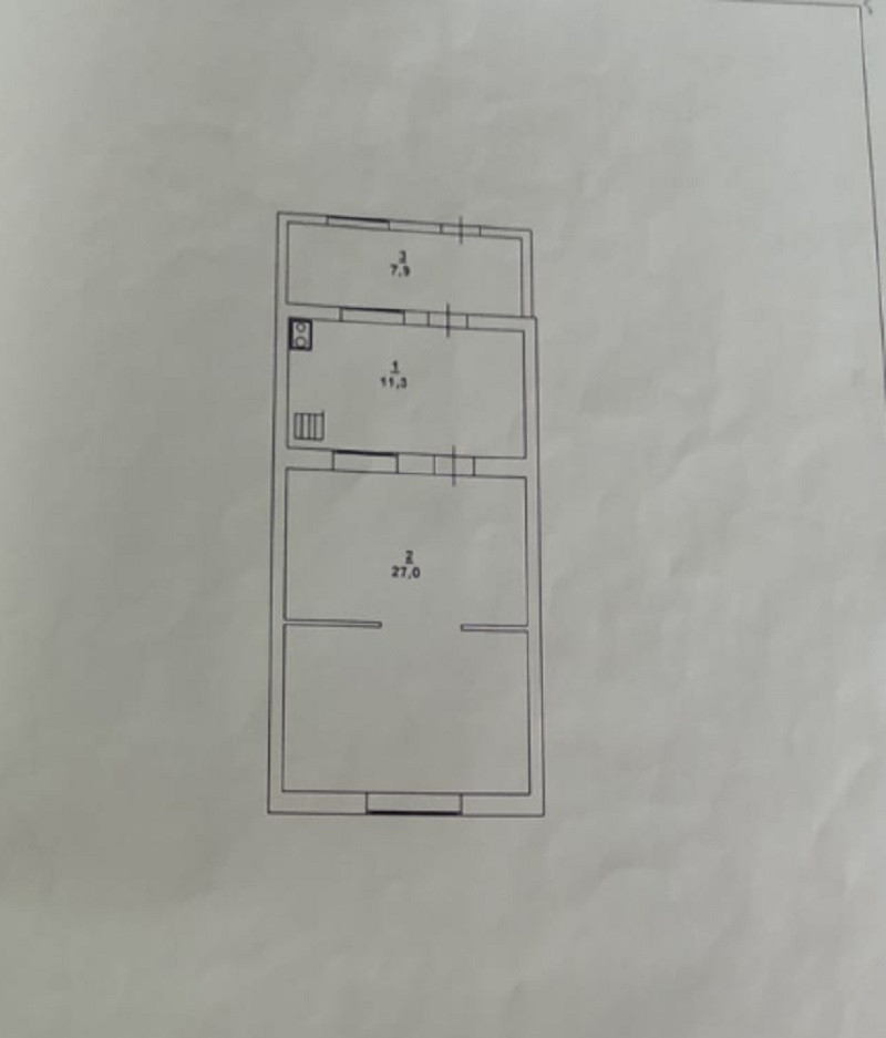 Продается однокомнатная  квартира 46 кв.м. в одноэтажном жилом доме (жактовский) в районе Базальт-2. Дом щитовой, обложен кирпичом. Требуется ремонт. Имеется свет, газ, вода, слив.  Без удобств. По документам - 1 комнатная квартира (зал-27 кв.м., кухня-11 кв.м., подсобное помещение - 8 кв.м. ). По факту комната разделена на зал и спальню.  В подсобном помещении можно сделать сан. узел.  Перед домом и за ним 2 небольших земельных участка. Прямо по улице и слева коттеджи. Получается что то вроде домика в деревне, но по цене комнаты в общежитии. Рядом магазины, остановка общественного транспорта. 1 взрослый собственник. По запросу могу выслать видео.
