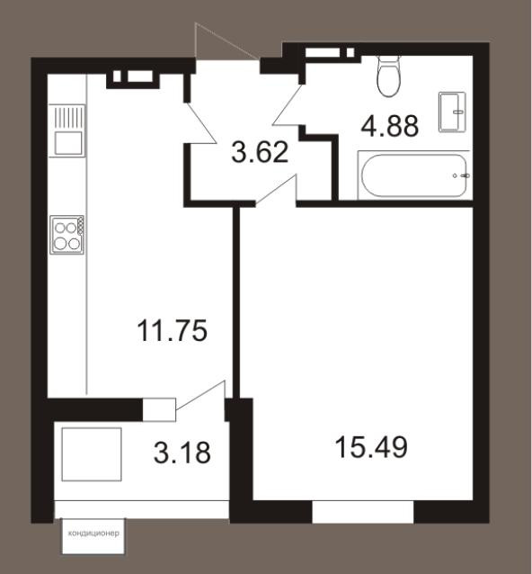 - жилая комната правильной формы 15,49 кв.м;