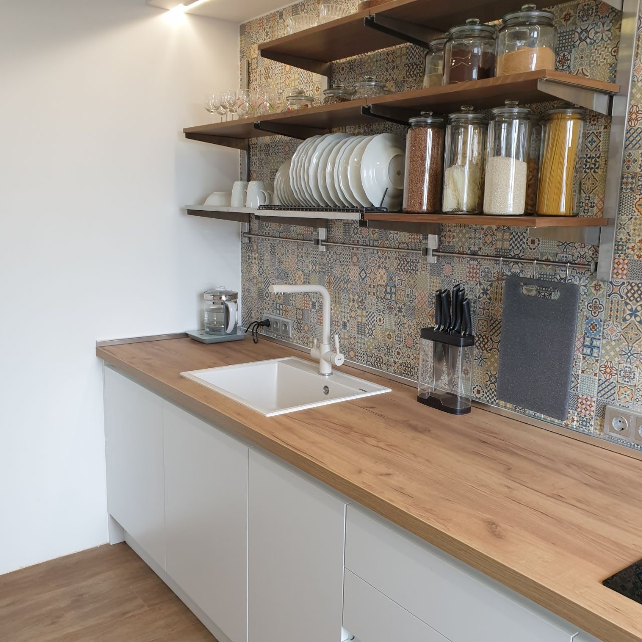 - керамической мойкой с краном.