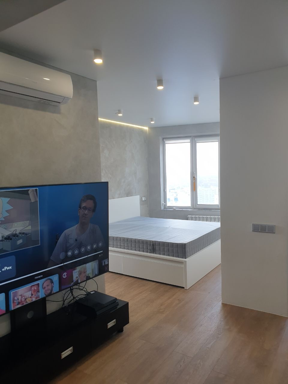 На полу — кварцвинил Alpin floor, 43 класса. Максимальная износостойкость и безупречный внешний вид деревянного паркета. Такой пол не боится воды.