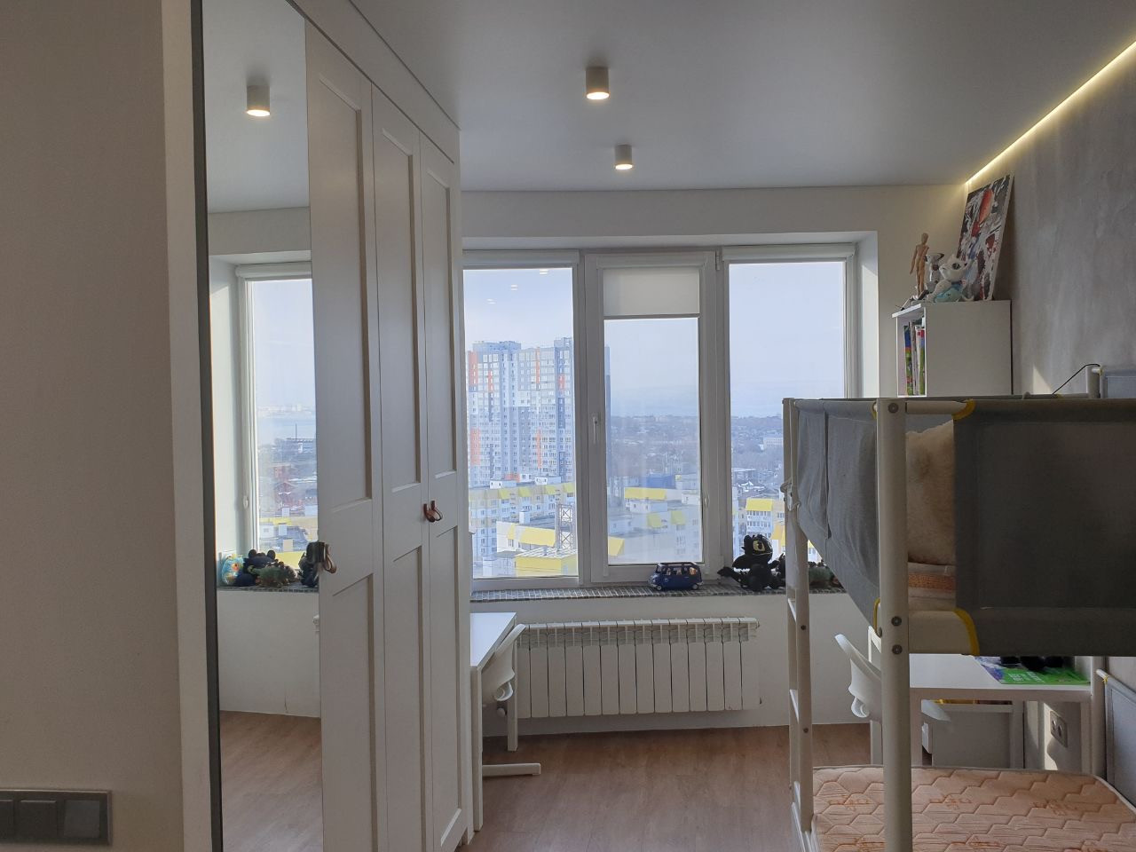 Квартира очень светлая, необыкновенно «атмосферная». Здесь большие панорамные окна, из которых открывается потрясающий вид на Волгу!
