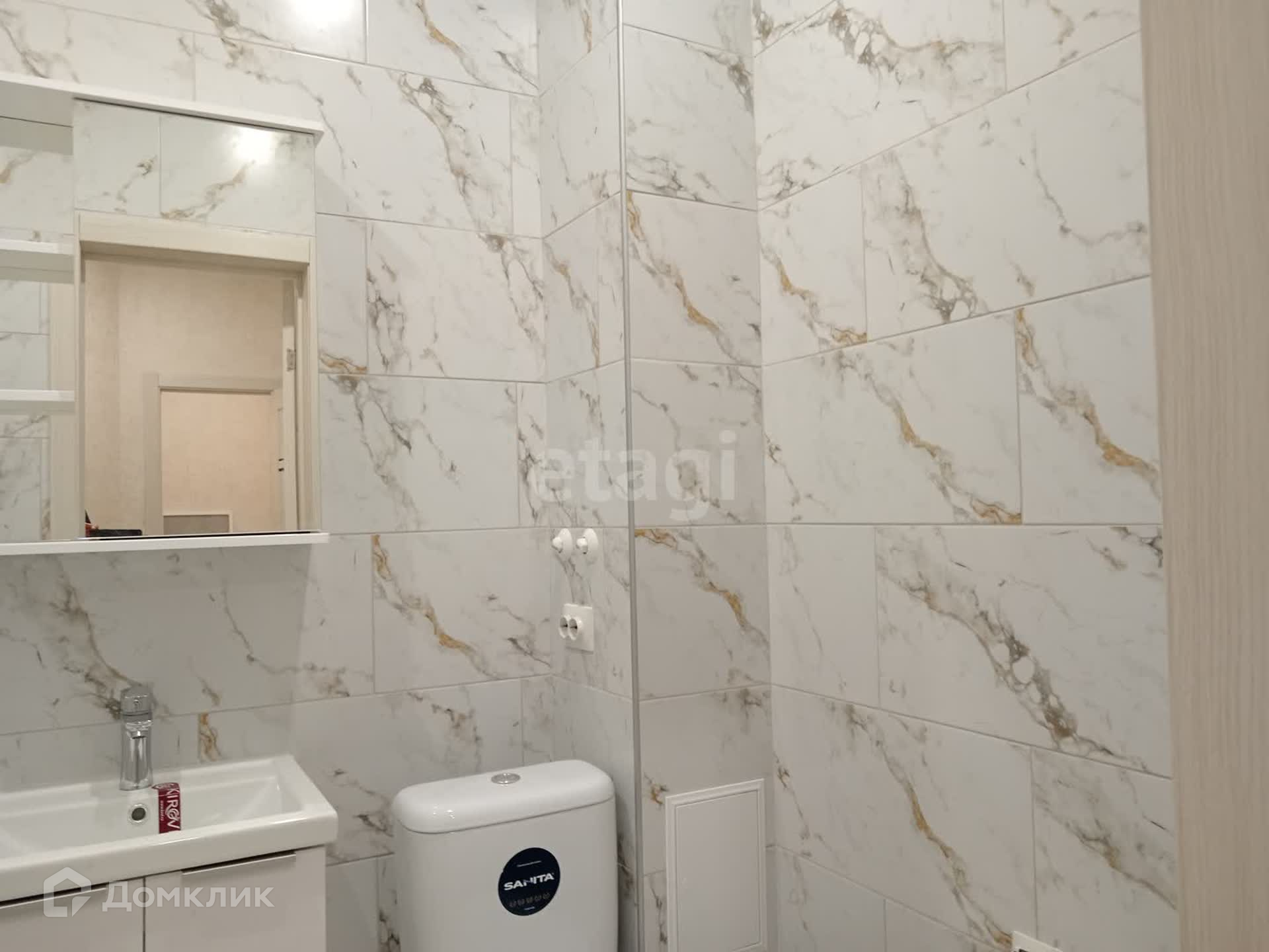 Санузел совмещённый с хорошей сантехникой, всё в плитке.