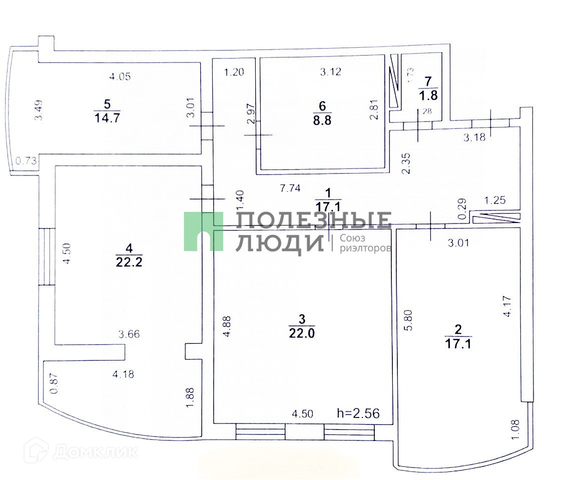 Высота потолков 2.6 м