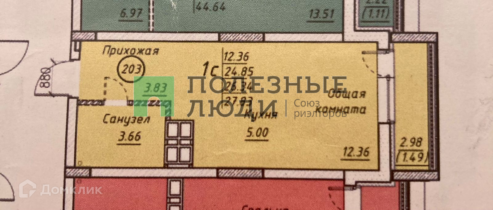 Общая площадь 27.8 м2